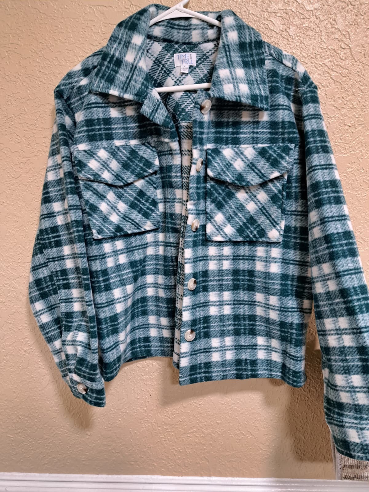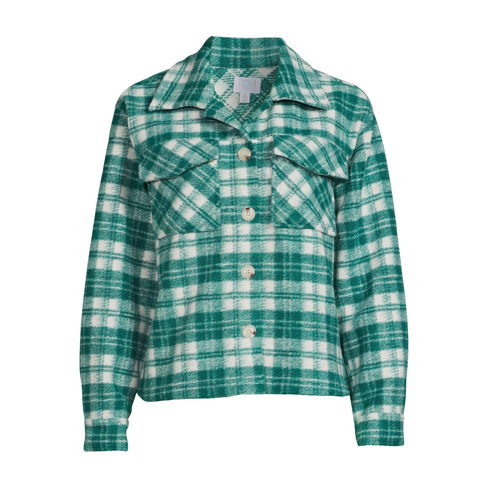 - Time and Tru Women's Brushed Fleece Cropped Shacket, Sizes L(12-14)