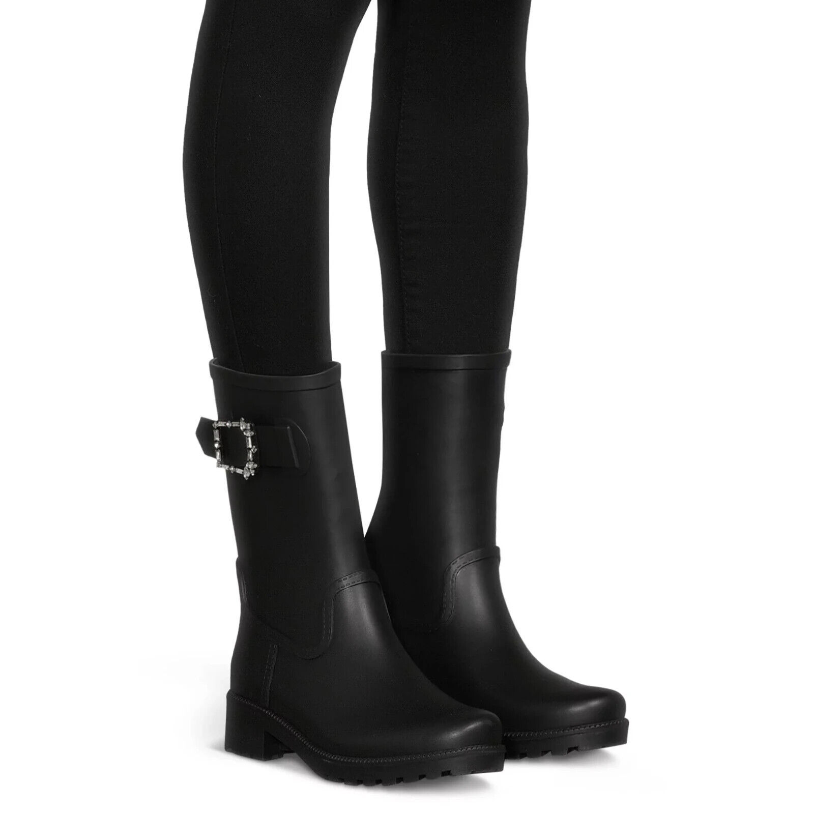 - Time and Tru Women's Buckle Rain Boots, Black Size 8