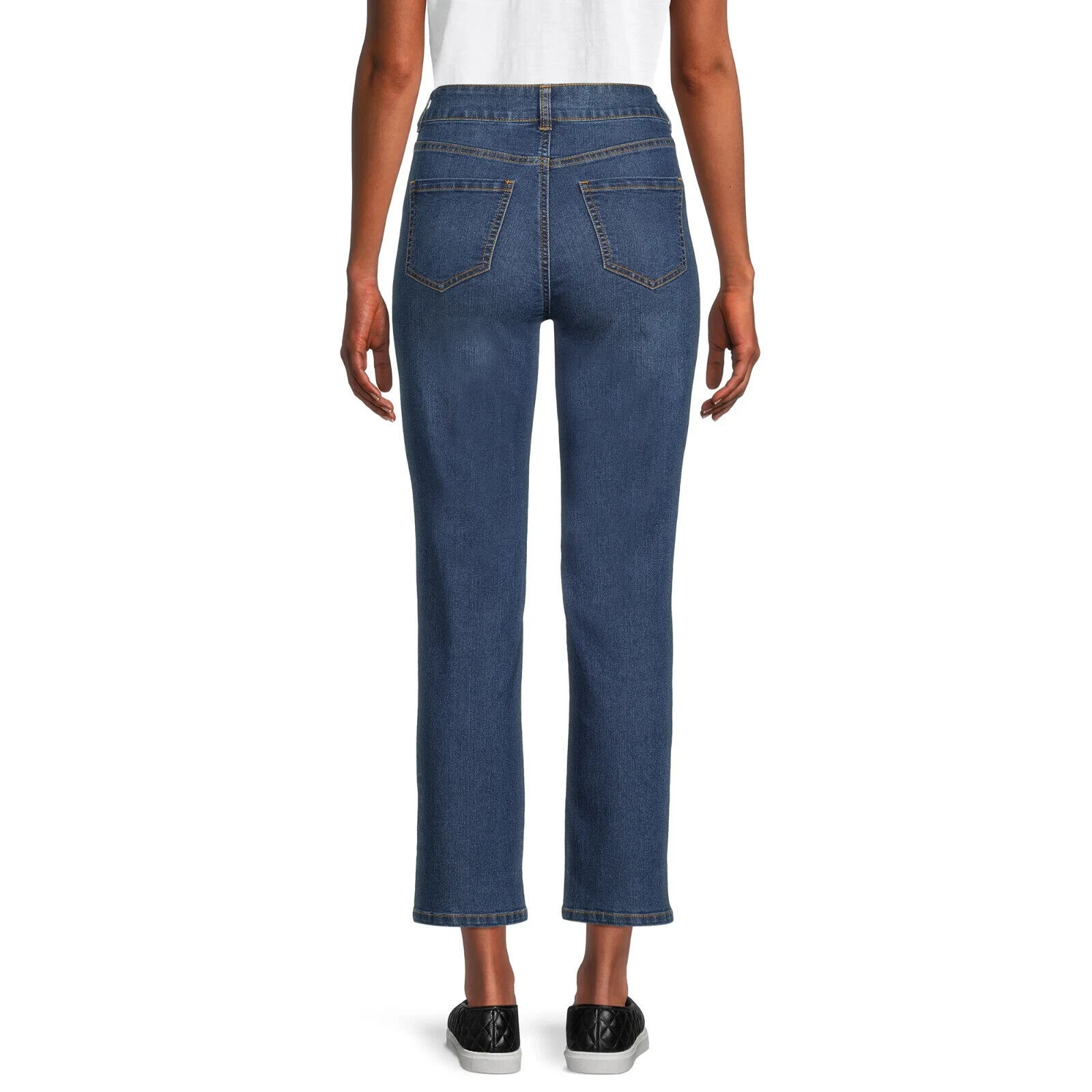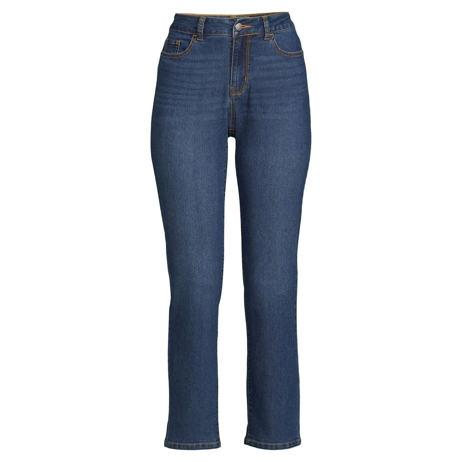 Straight-leg style is back! Time and Tru Womens Cropped Straight Jeans are a classic shape that complements every body type. Updated with a hint of stretch for comfort and a high waist for perfect pairing with your favorite tops, their figure-flattering silhouette looks equally at home dressed up or dressed down. Wear them with everything from sneakers to pumps.