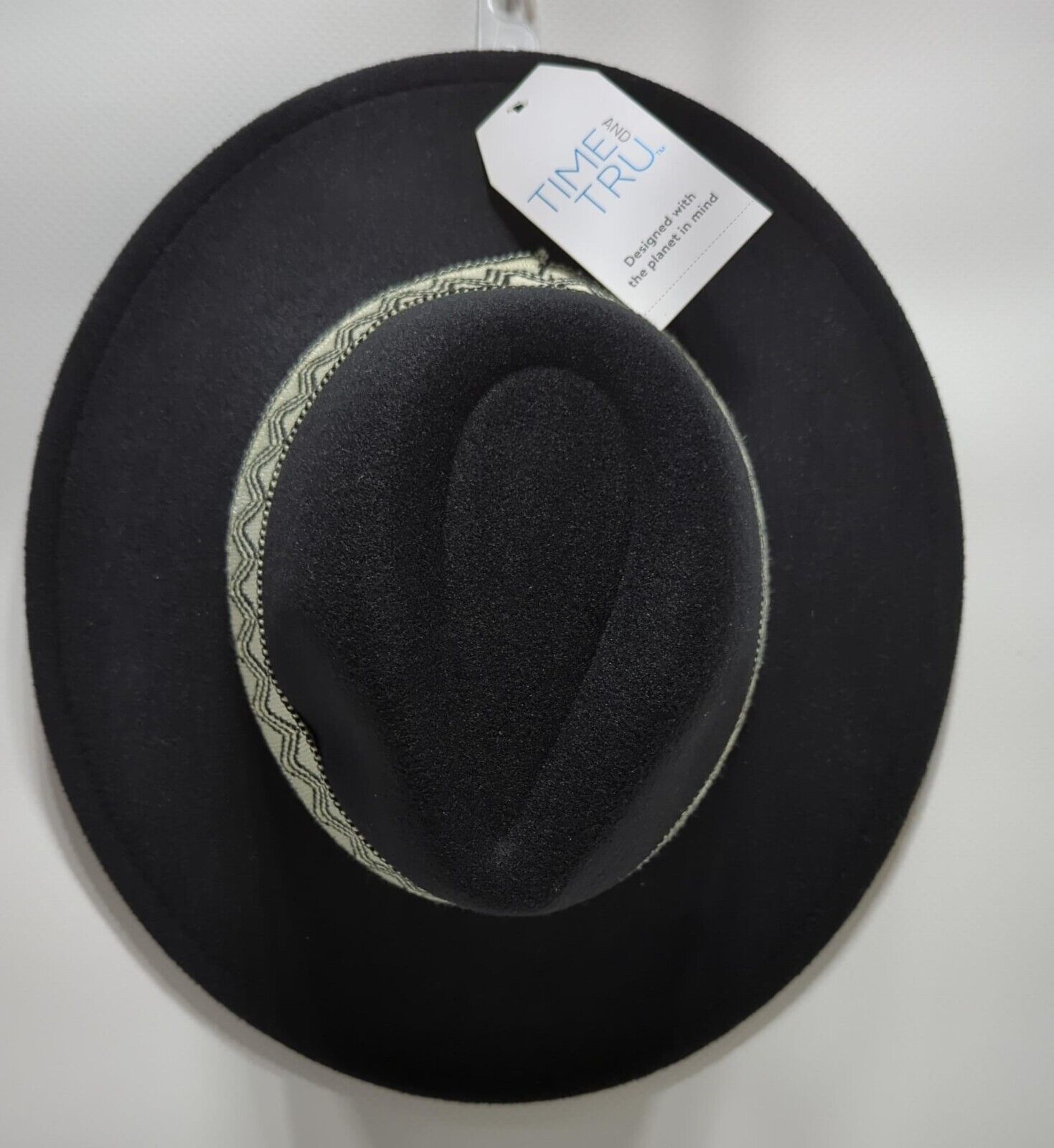 Time and Tru Women?s Felt Fedora with Pendleton Trim, Black One Size