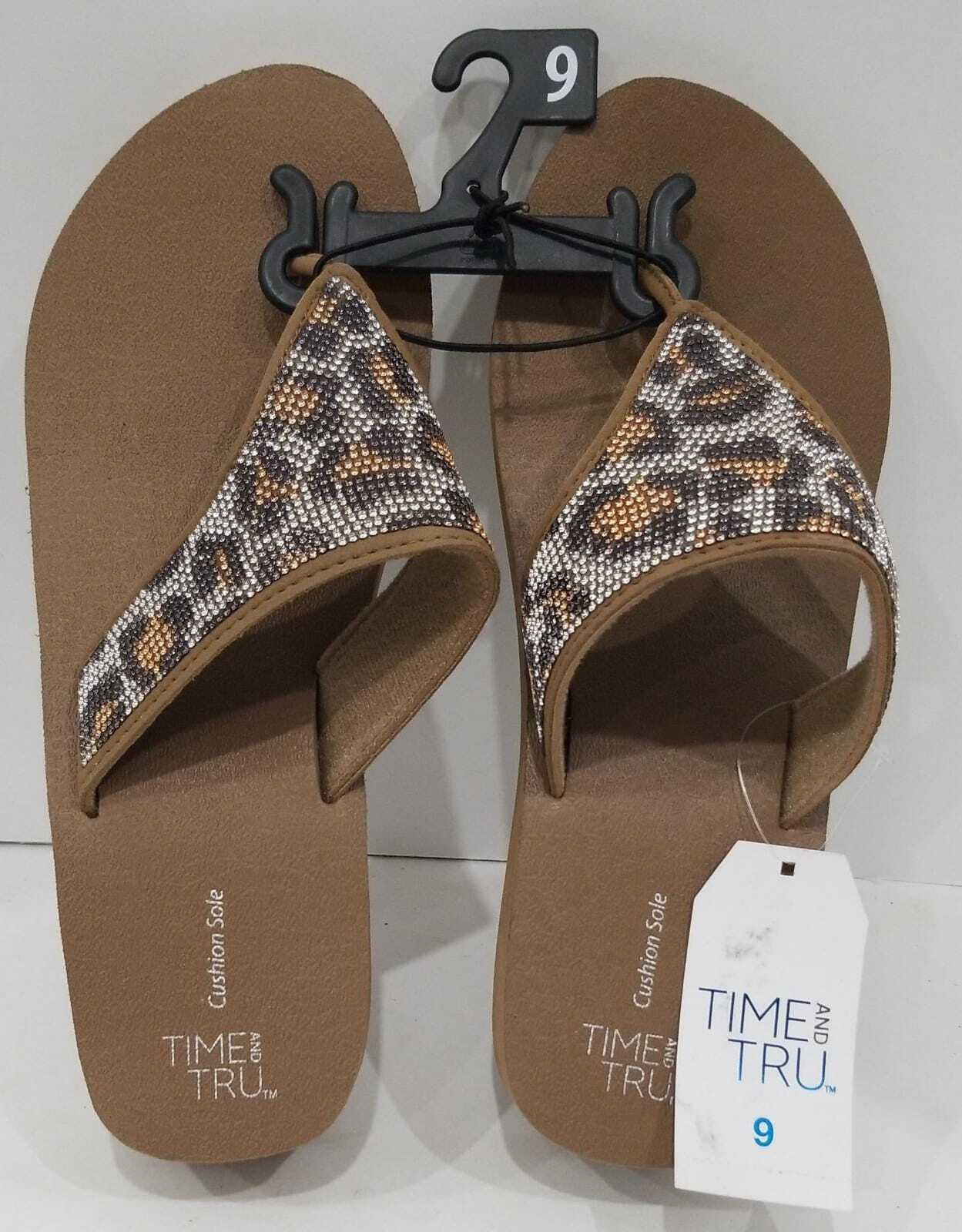 - Time and Tru Women's Lifestyle Cushioned Sole Flip Flops Leopard Size 9