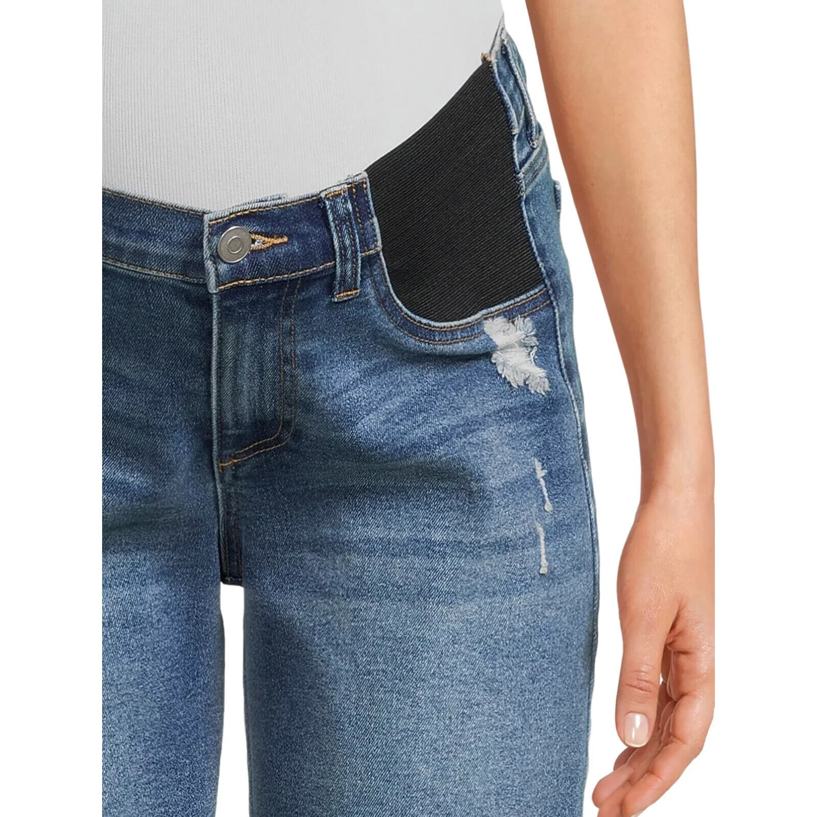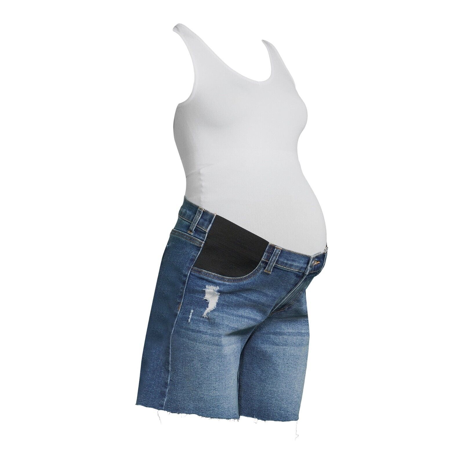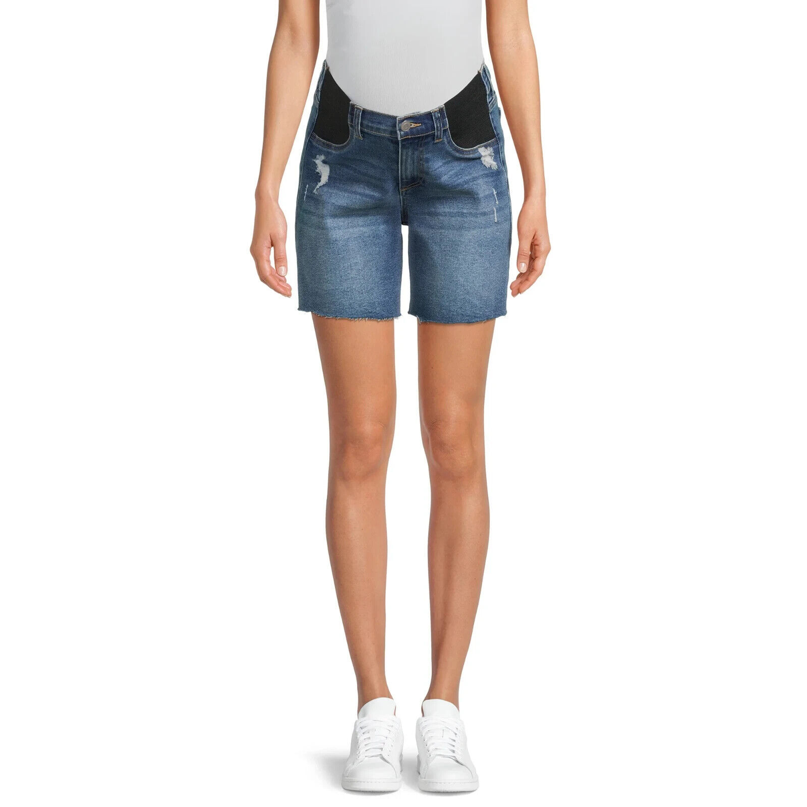 These Time and Tru Maternity Denim Bermuda Shorts give you the perfect mix of fashion and comfort during your pregnancy. Crafted in a premium stretch denim that not only has you looking great but feeling great, they feature a relaxed fit and elastic insets at the waist for maximum support and coverage. The edgy-chic frayed hem pairs with all your favorite tees, pullover tops and hoodies.