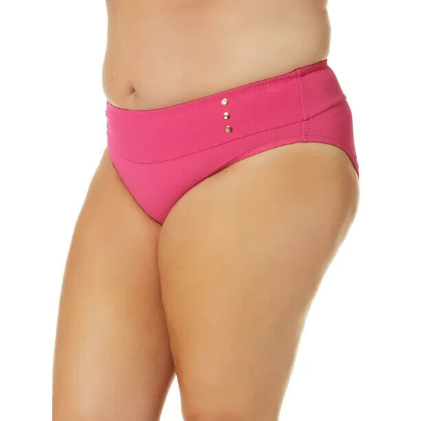 Time and Tru Women's Mid Rise Button Front Bikini Bottoms Pink Size 1X(16W-18W)