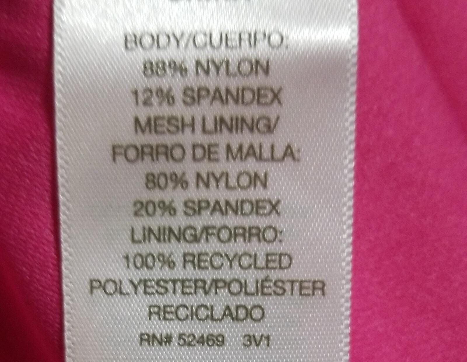 Material: 88% Nylon/12% Spandex; Lining: 100% Polyester