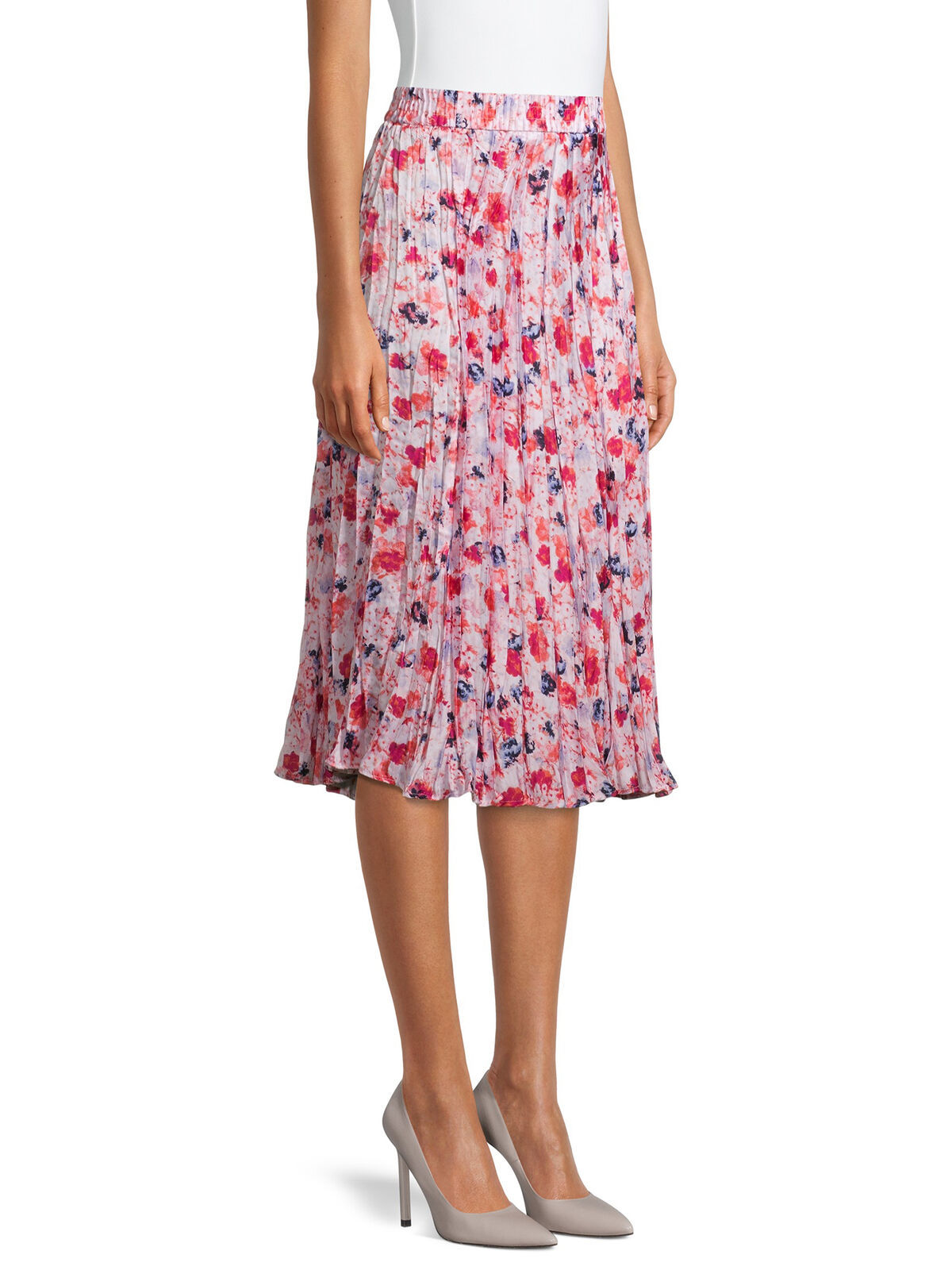 Time and Tru Women's Midi Crinkle Skirt Floral Pink Size XXXL
