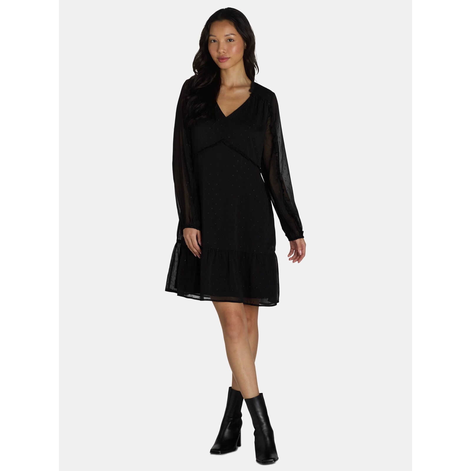- Time and Tru Women's Mini Lurex Shine Dress Long Sleeves Size S (4-6 Color Black