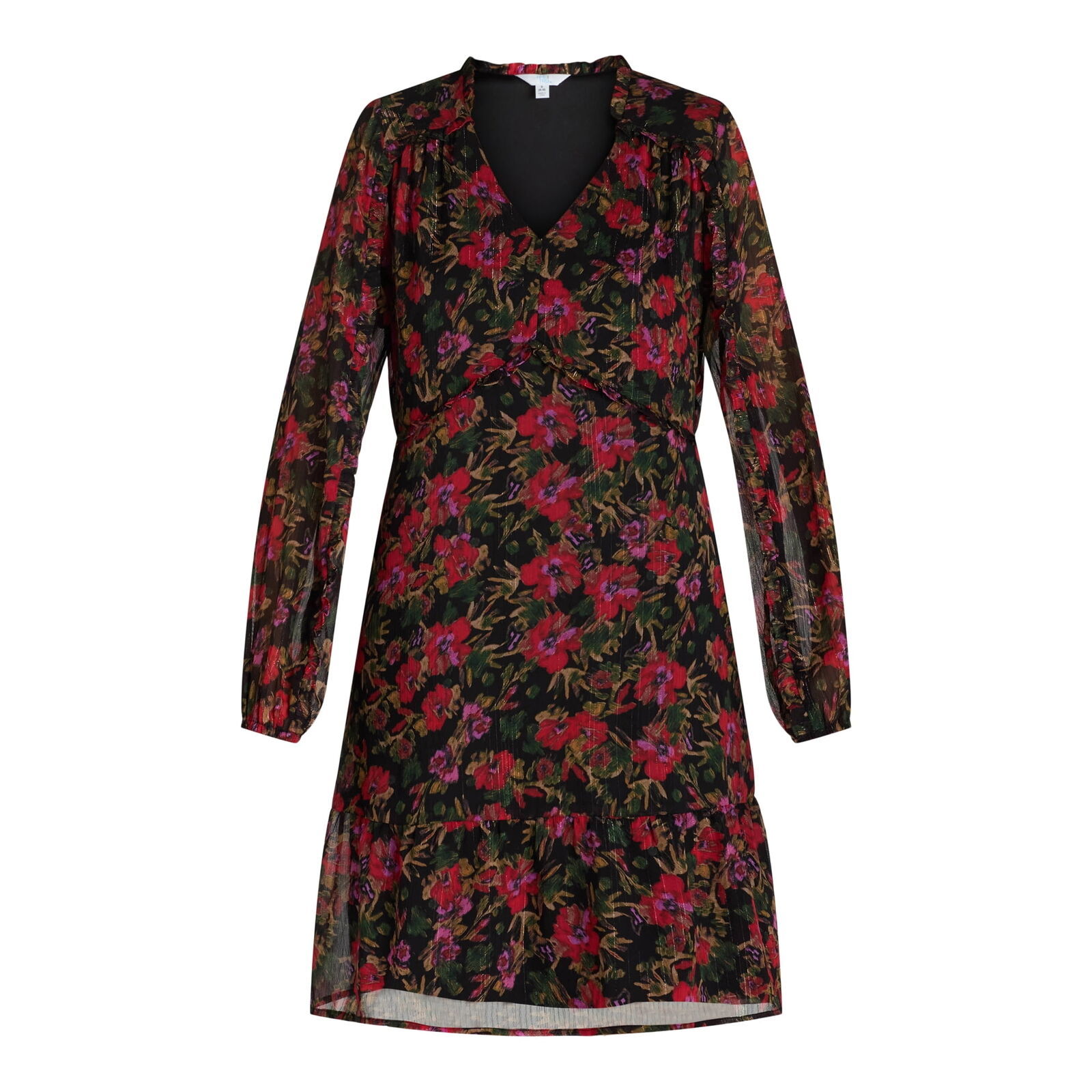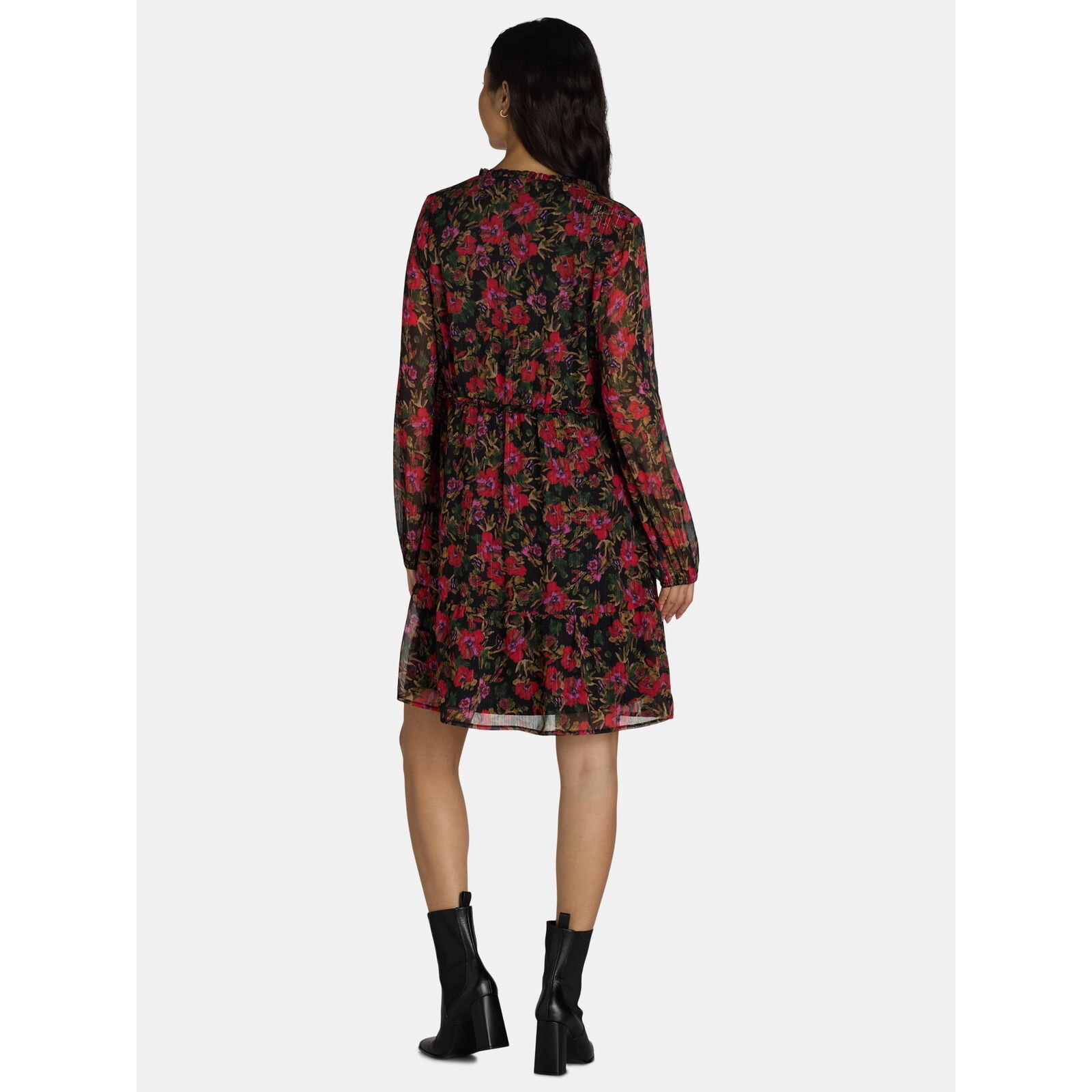 Discover elegance and comfort with Time and Tru's Mini Floral Dress for Women. Perfect for any occasion, this dress combines timeless style with a modern twist. Its long sleeves and mini length offer a flattering silhouette, while the delicate floral pattern adds a touch of femininity. Pair this dress with your favorite heels and add some statement jewelry pieces for a complete look.