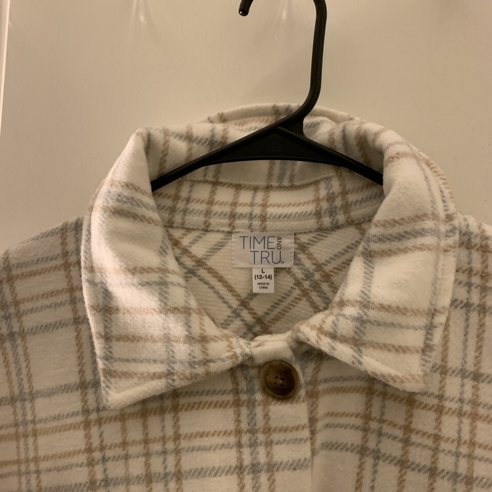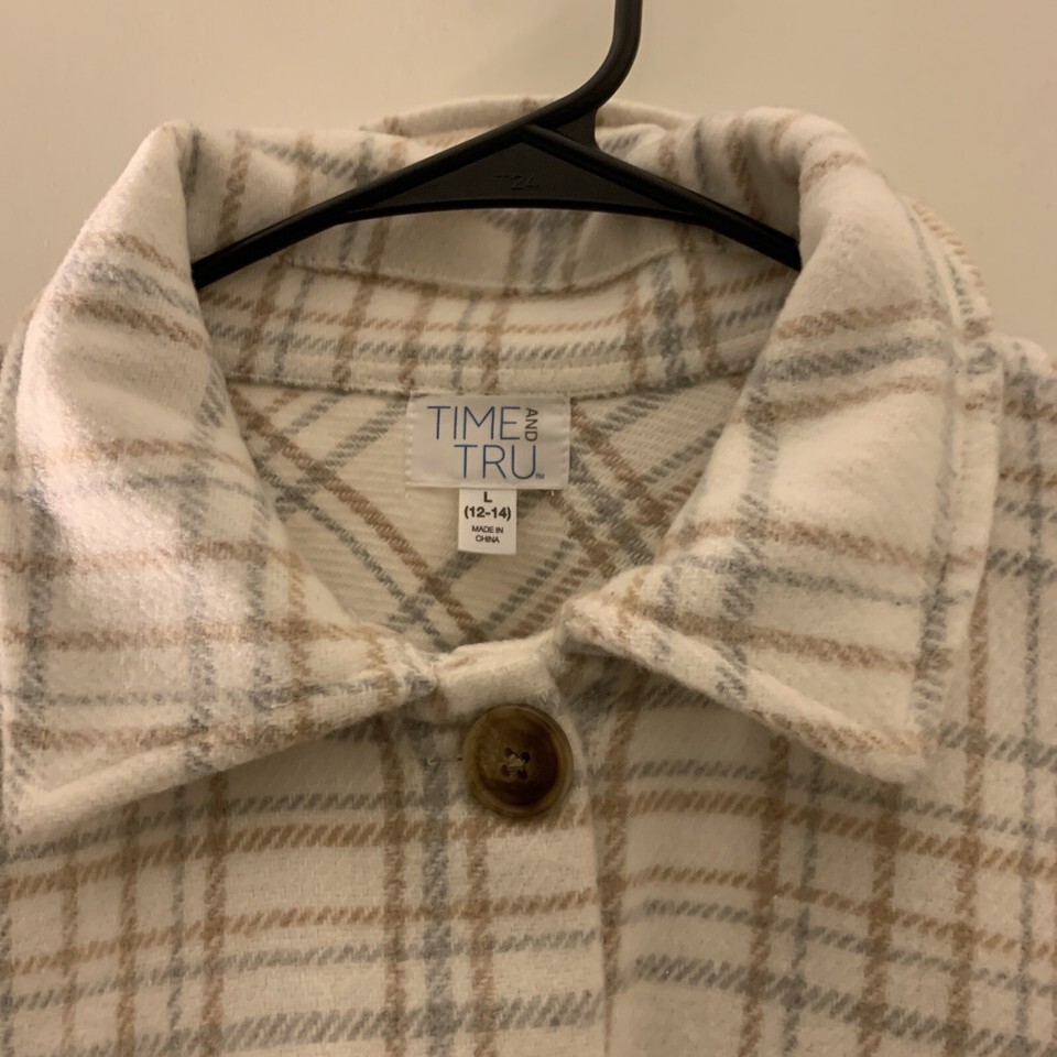 - Time and Tru Women's Plaid Button-Up Shacket Shirt Crop Size L 12-14 Multi-Color