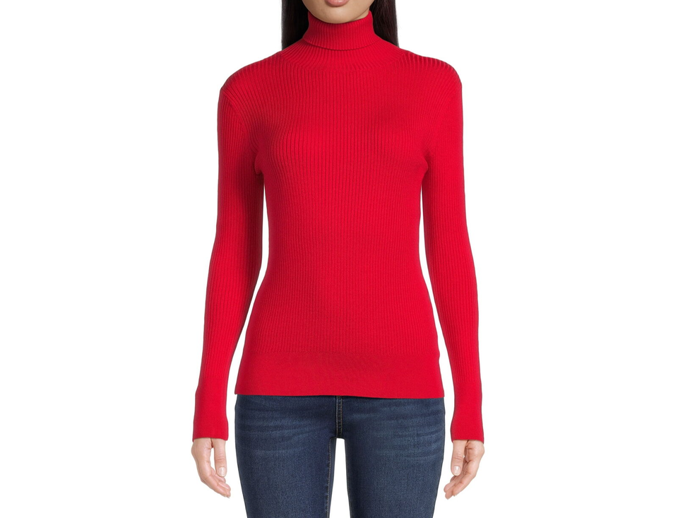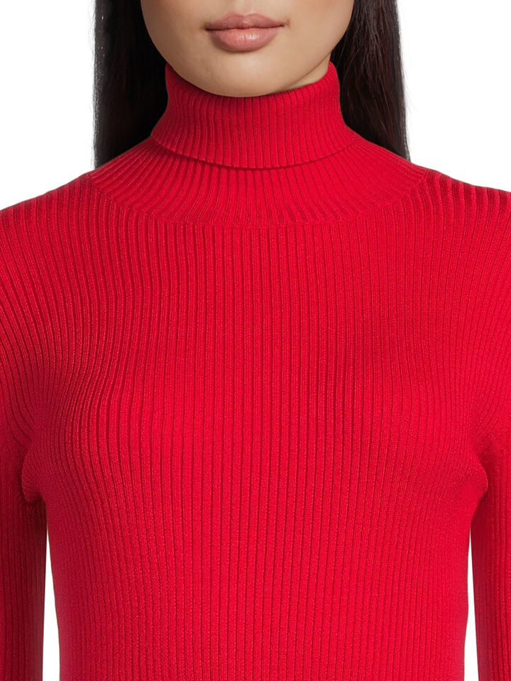 - Time and Tru Women's Ribbed Knit Turtleneck Top Brilliant Red L (12-14)