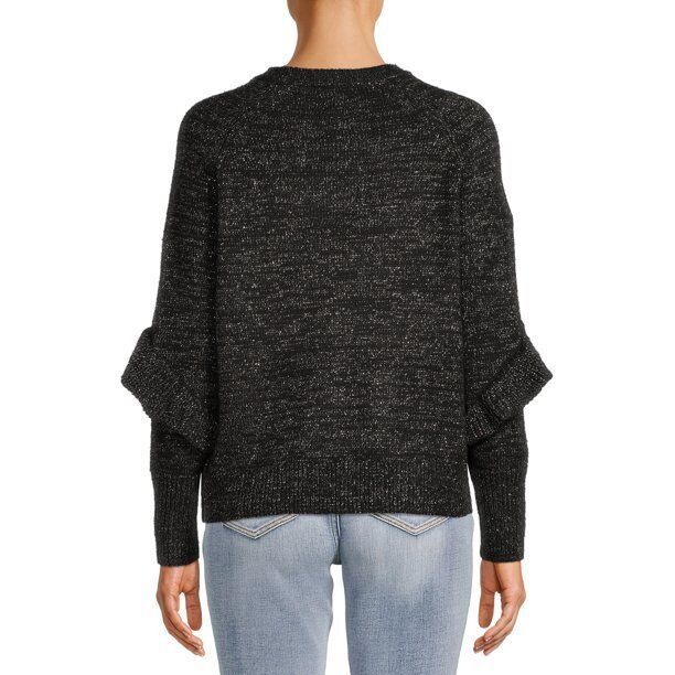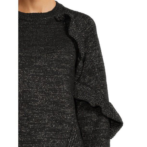 - Time and Tru Women's Shimmering Metallic Ruffle Sweater Black Size M (8-10)