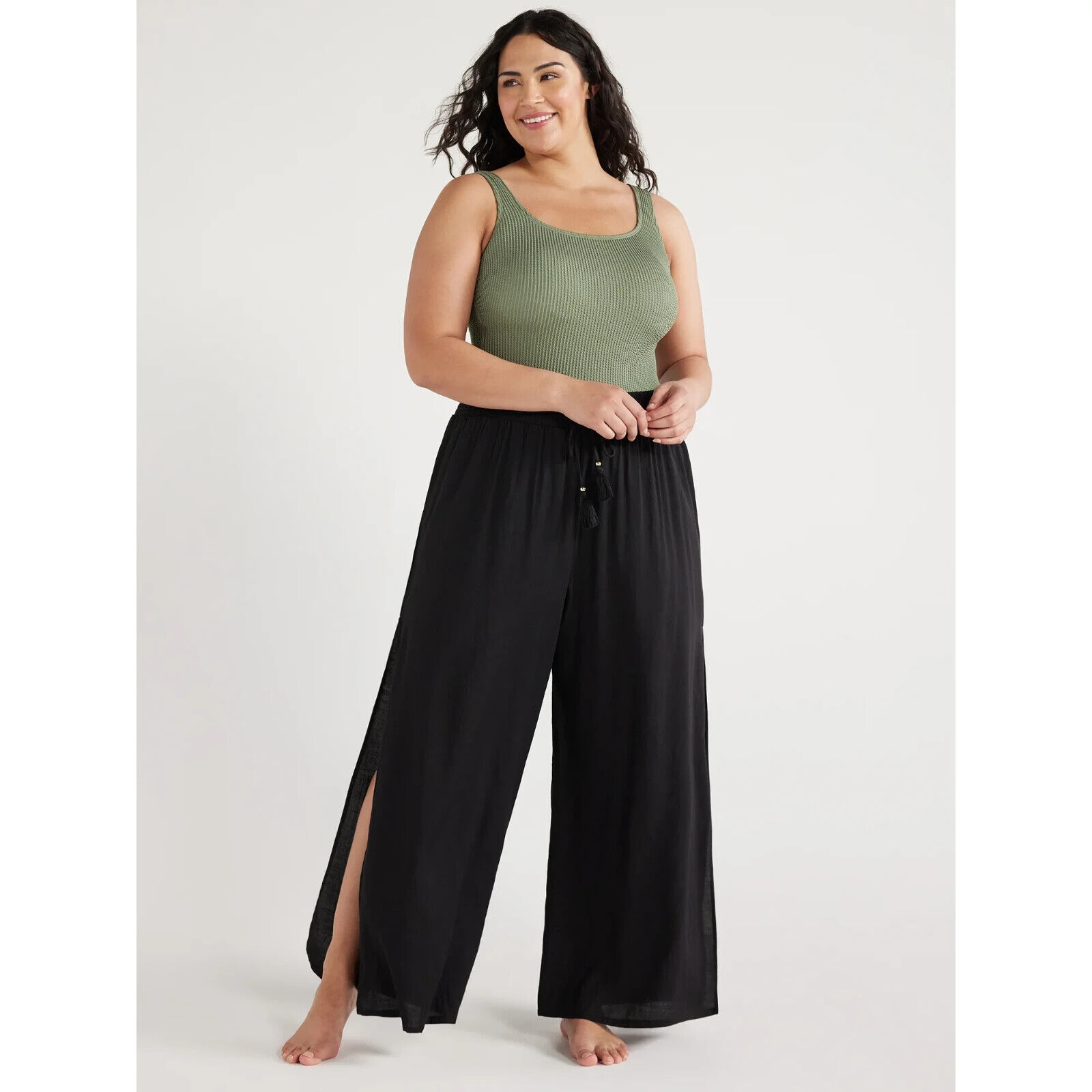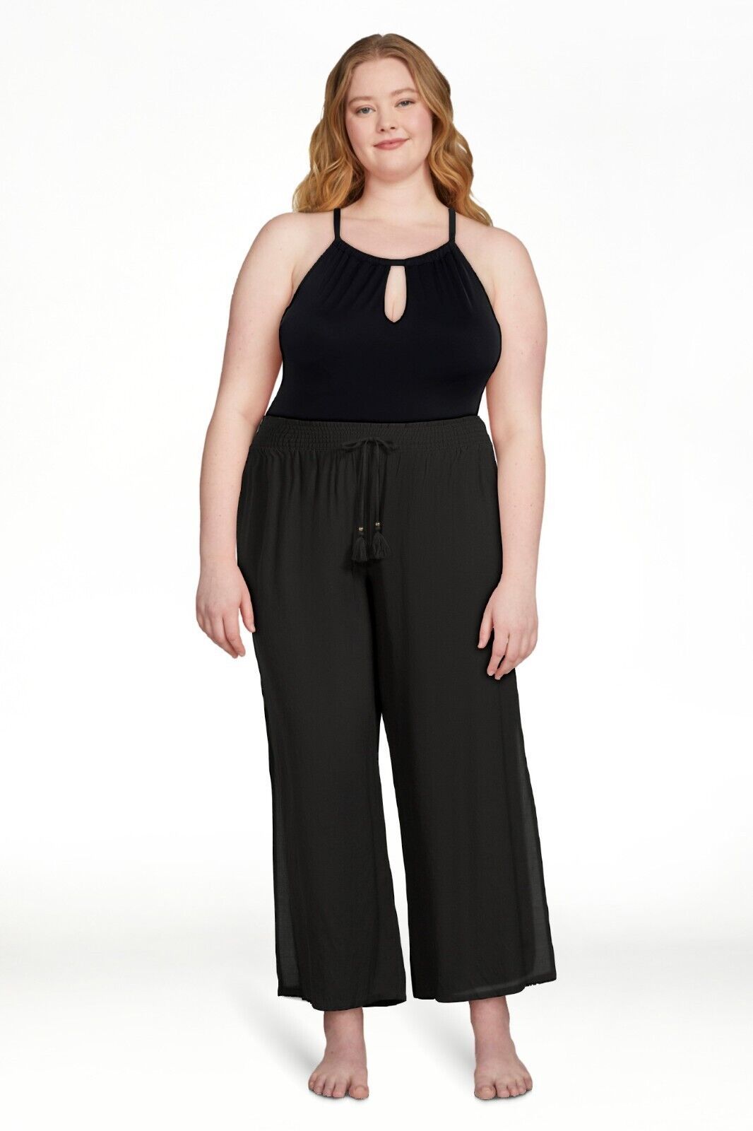 - Time and Tru Women's Smocked Coverup Pants, Black Size 1X(16W-18W)