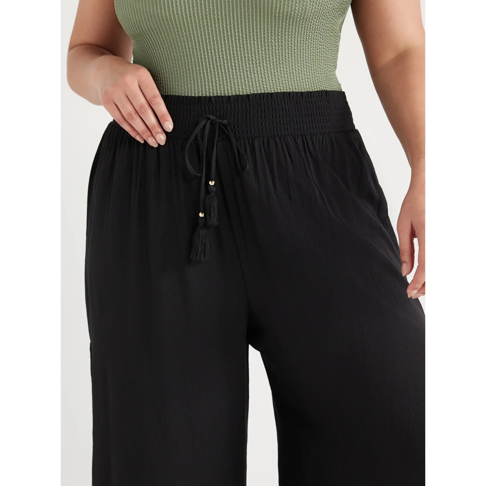 - Time and Tru Women's Smocked Coverup Pants, Black Size L(12-14)
