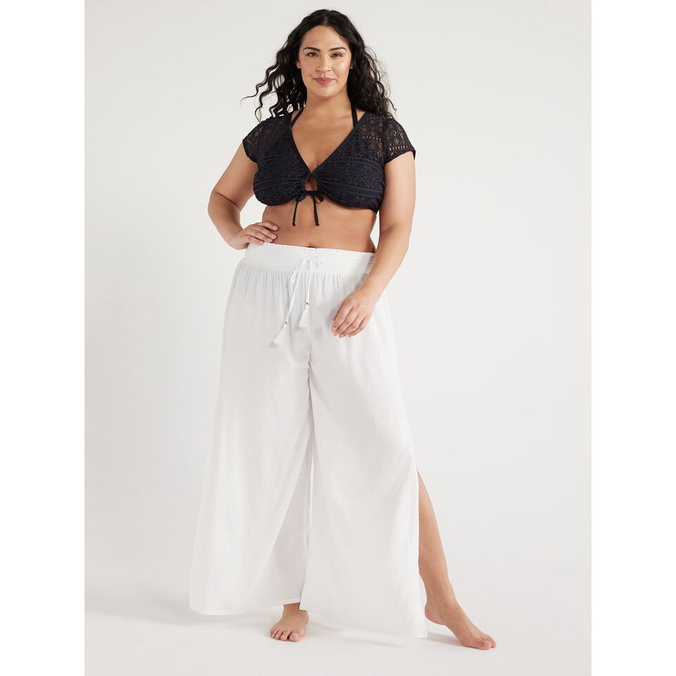 - Time and Tru Women's Smocked Coverup Pants, Size 2X (20W-22W) Color White