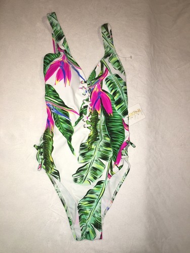 - TiniBikini Tropical Lace-Up Plunge One-Piece sz xs new
