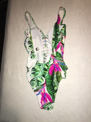 TiniBikini Tropical Lace-Up Plunge One-Piece sz xs new
