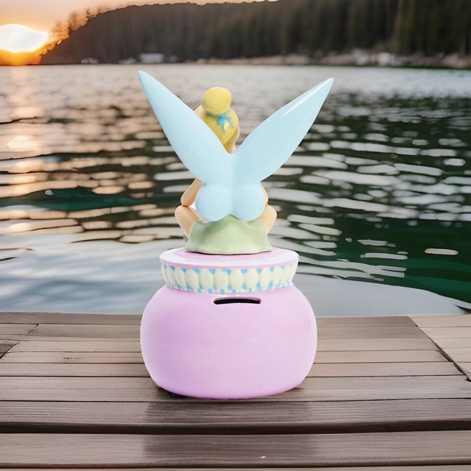 - Tinker Bell Coin Bank Hand Painted Ceramic Porcelain 8 1/2 Inches Tall Disney