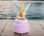 This Tinker Bell coin bank is a charming hand-painted ceramic and porcelain collectible standing at 8 1/2 inches tall at the wing tip. Featuring the beloved Disney character of Tinker Bell, this whimsical bank would make a delightful addition to any Disneyana collection. With a Disney brand, this piece originates from China and captures the magic and enchantment of the Disney franchise. Perfect for fans of Tinker Bell and Disney collectibles, this coin bank is a unique and adorable way to store coins and memories. beautiful condition no box
