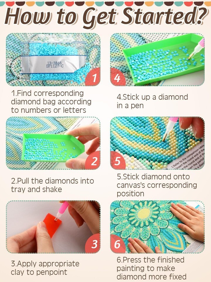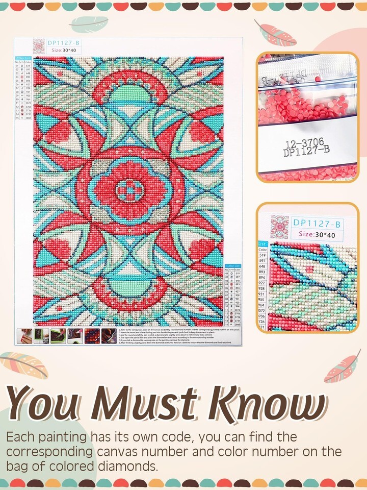 Exquisite Mandala Style: these diamond art kits adopt the elegant design of the Mandala styled diamond art; The canvas is made of waterproof tarpaulin material ensures reliability and suitability for adding a touch of color and sophistication to various spaces, including living rooms, bedrooms, offices, and bars