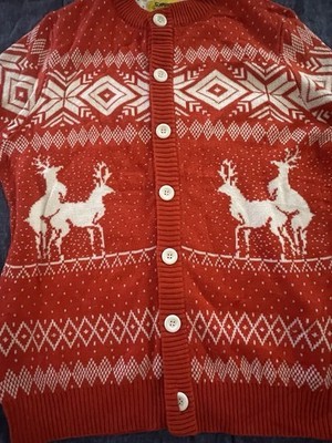 - Tipsy Elves Ugly Christmas Sweater Red & White Reindeer-ing Button-up Cardigan