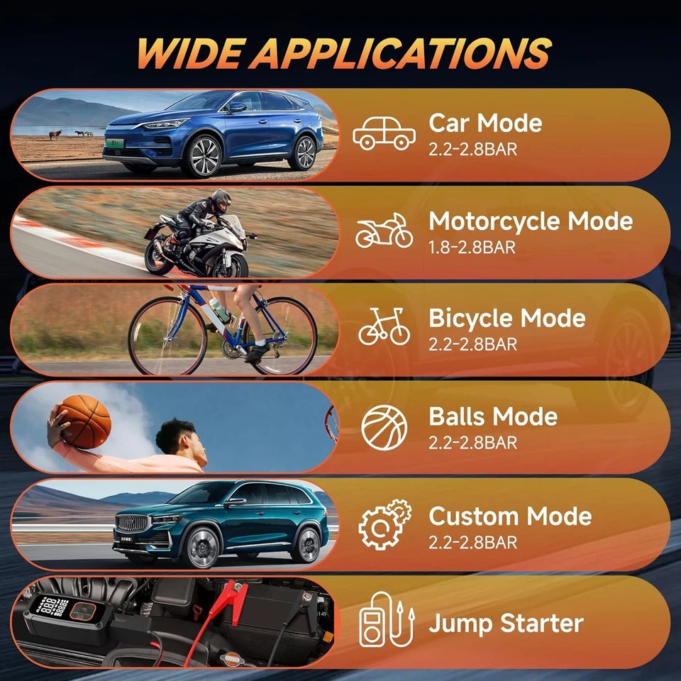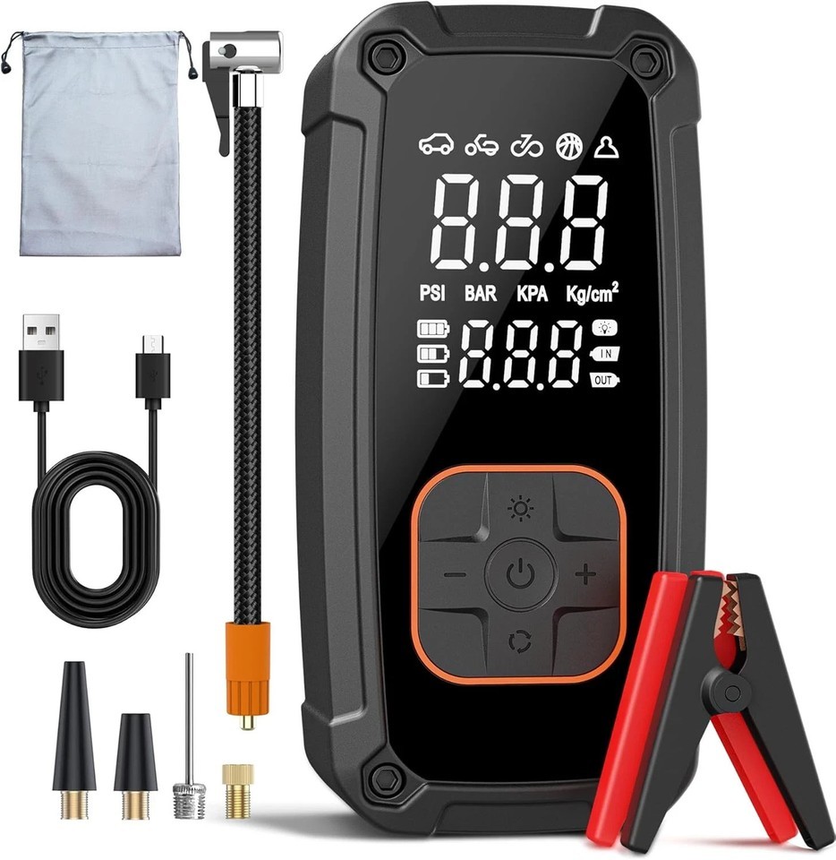 - Tire Inflator Portable Air Compressor with Jump Starter - 150PSI & 25000Mah Car