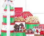 'Tis the season to celebrate the joy of giving and this holiday gift tower loaded with chocolate and sweets makes it easy. Six festive boxes are filled to the brim with Ghirardelli milk chocolate peppermint bark, dark chocolate covered marshmallows, candy cane popcorn, chocolate chip brownies, vanilla caramels, Lindt milk chocolate truffles, spiced waffle cookies, dark chocolate truffles, raspberry fruit jelly candy and traditional Belgian truffles. This gift is loaded with holiday fare for all to enjoy.