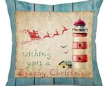 Perfect Set-1 Throw Pillow Cases Christmas Nautical Lighthouse Blessing Quote Vintage Wood Ocean Seahorse with Santa Claus Painted (HD Digital) Edge is Sewn, the Back is the Nature Linen Color without Printing