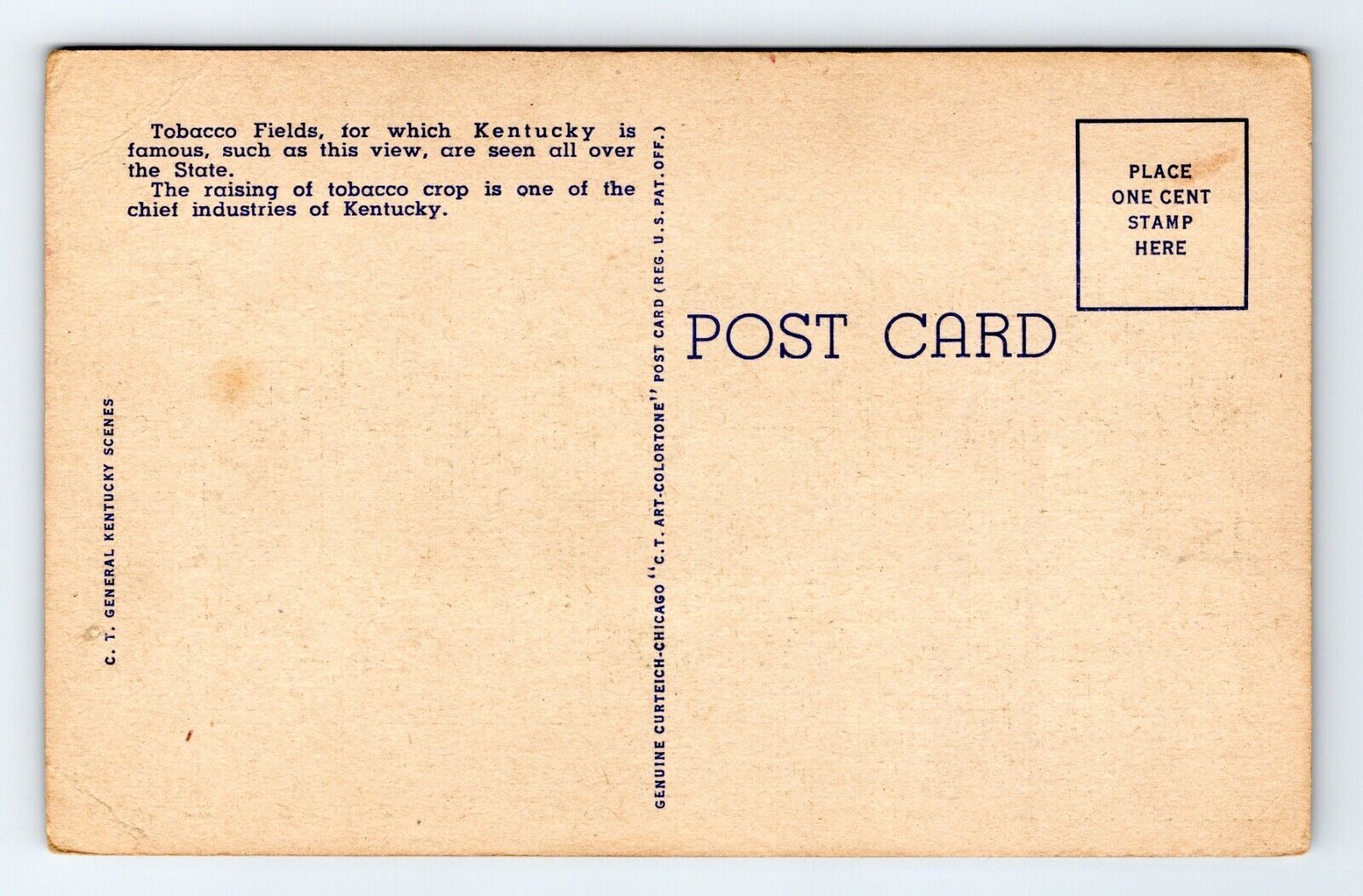 - Tobacco Field in Old Kentucky Agricultural Landscape UNP Unused Linen Postcard D