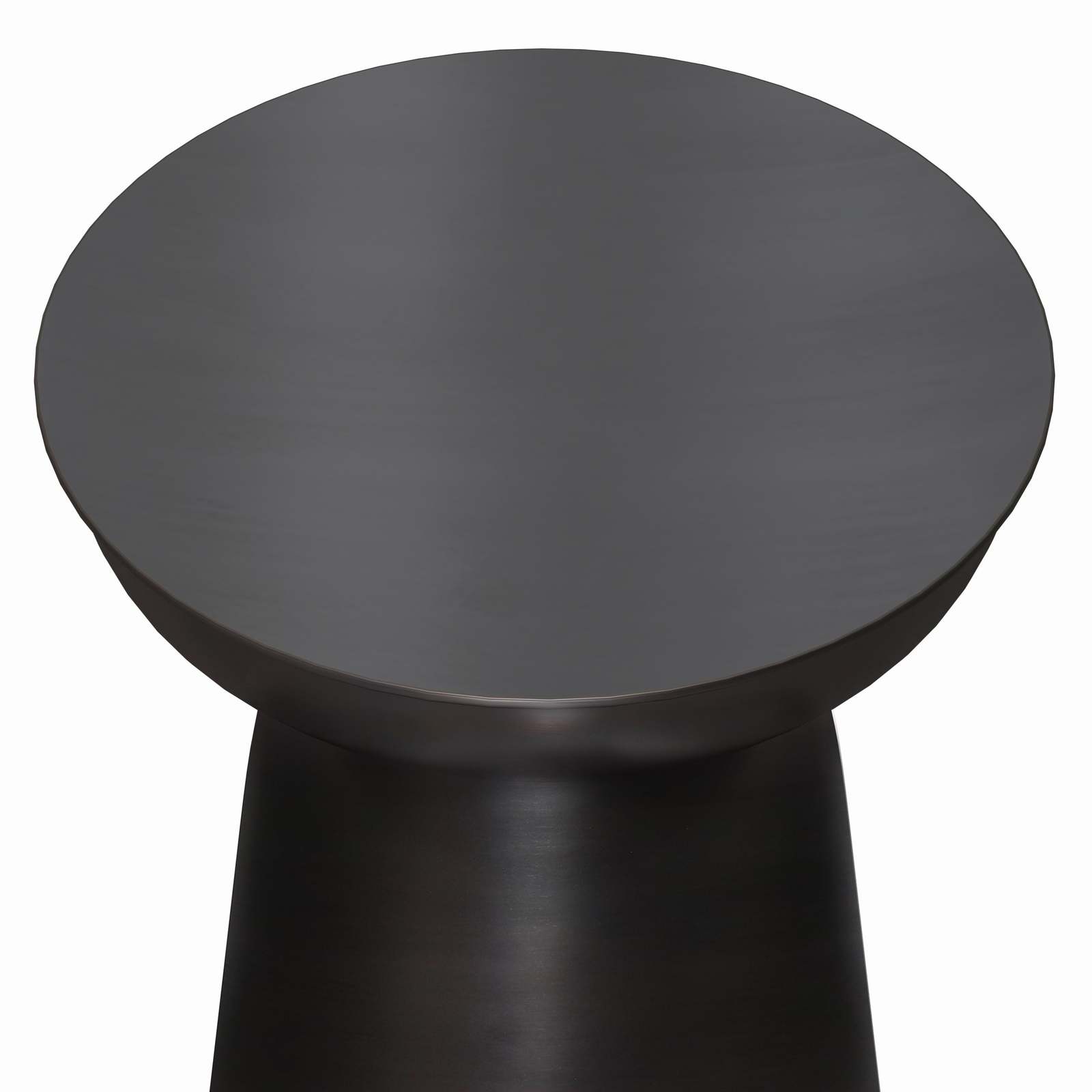 Sculptural Metal Design: Crafted from 22-gauge iron sheet metal, this drum-style table offers modern industrial appeal with a bold, sleek silhouette.