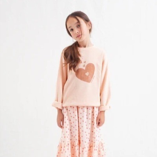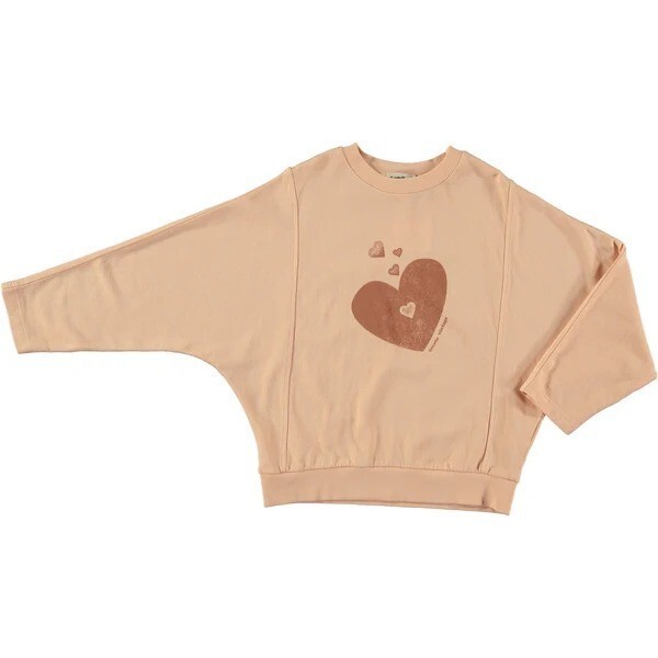 Soft and cozy sweatshirt made for kids with heart graphics and charming text. Perfect blend of comfort and style in a peach tone.