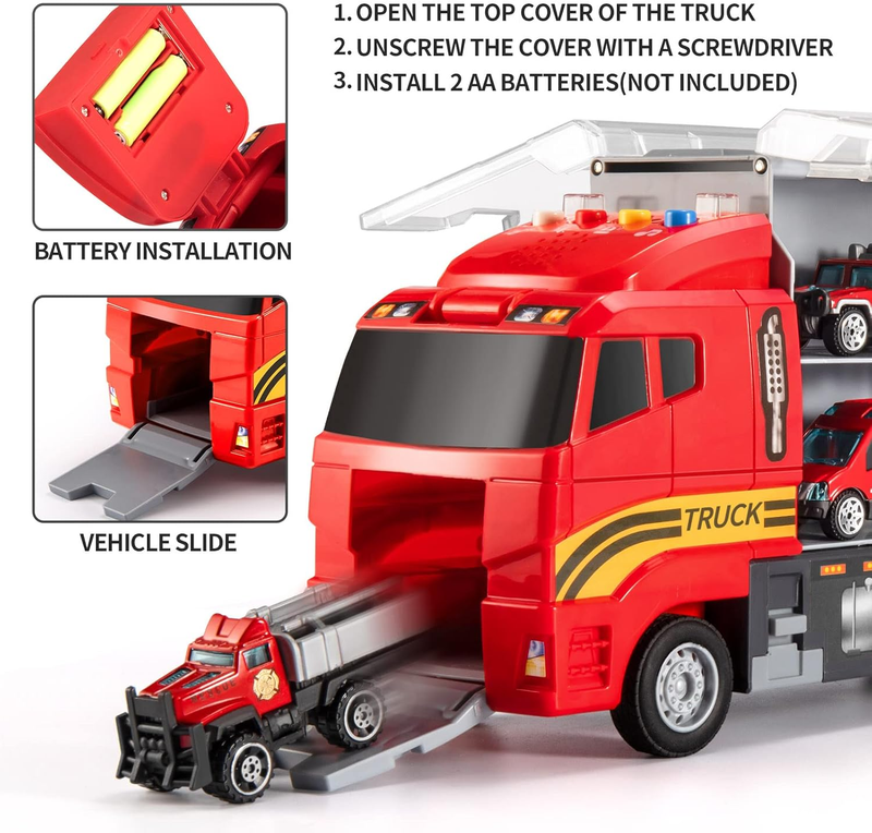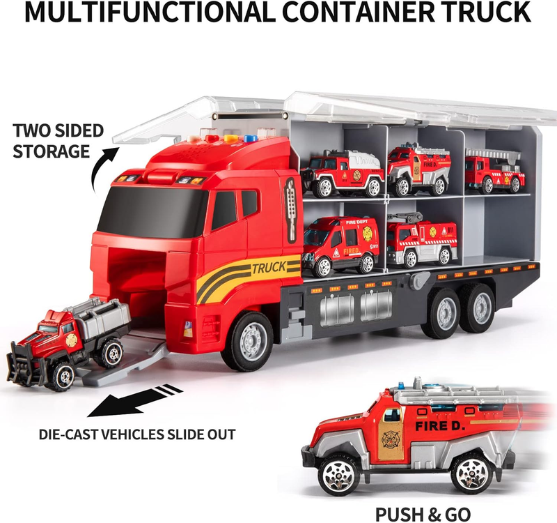 Toddler Toys for 3-4 Year Old Boys,Transport Cars Carrier Set Truck Toys (Fire car)