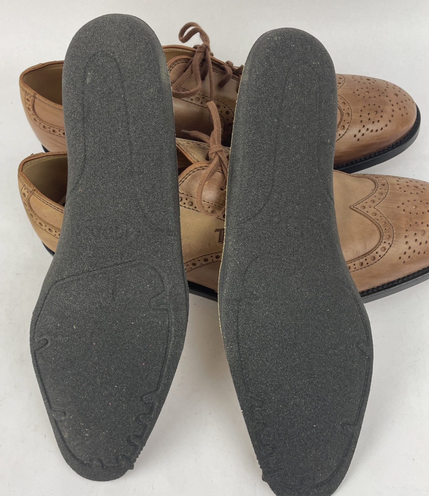 Tods Wingtip Dress Shoes Light Brown Size 10.5 Leather Soles Made in Italy VGC