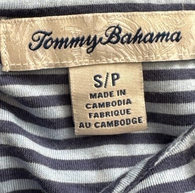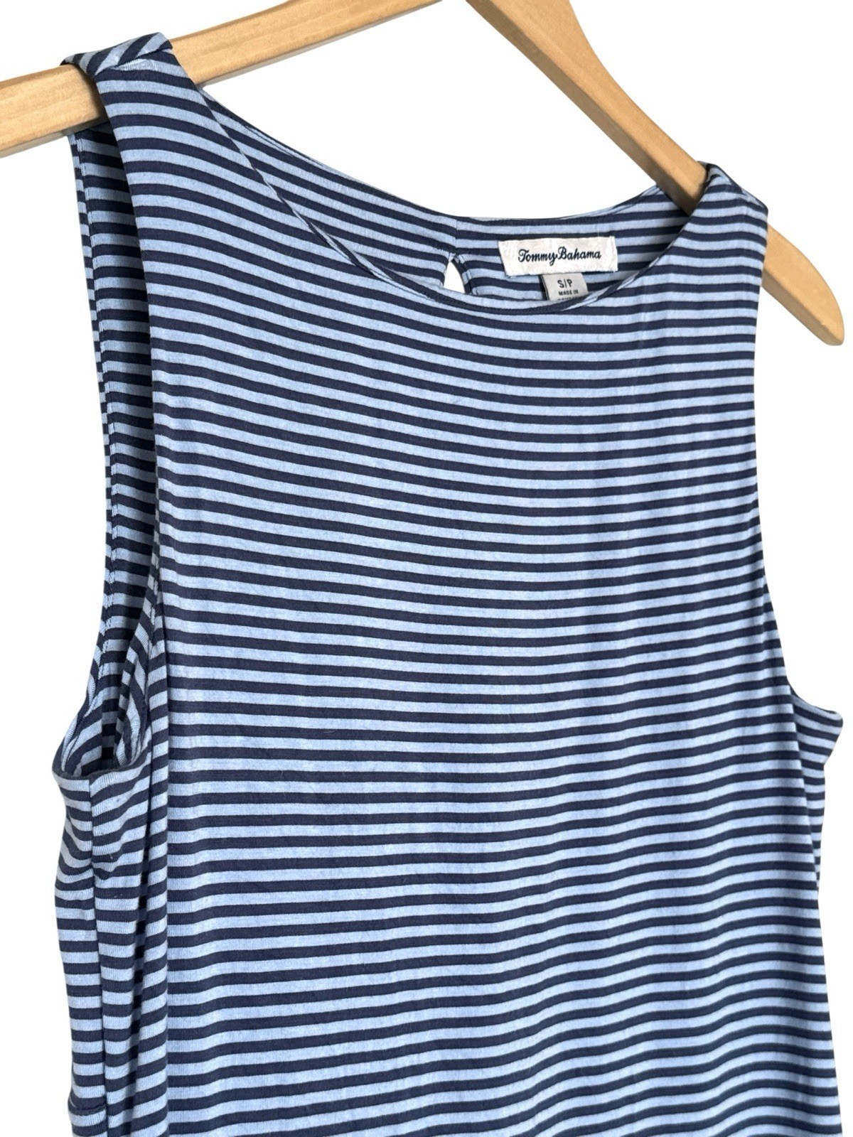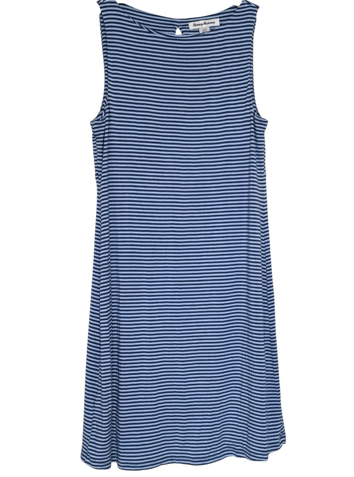 - Tommy Bahama Cassia Dress Womens S Blue Striped Sheath Open Back Jersey Knit