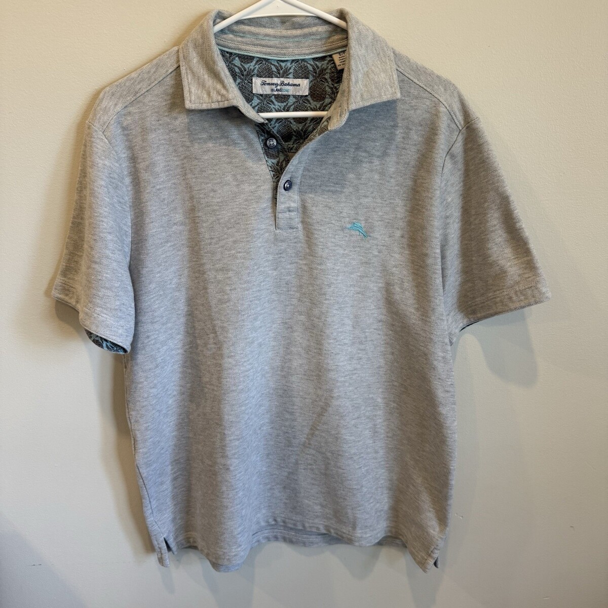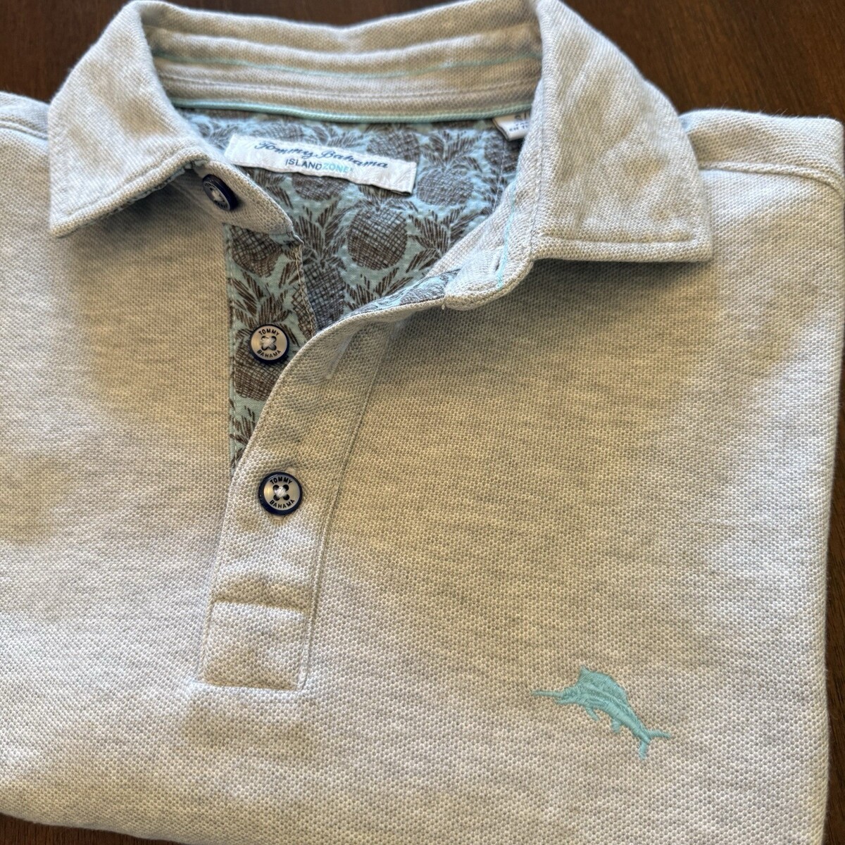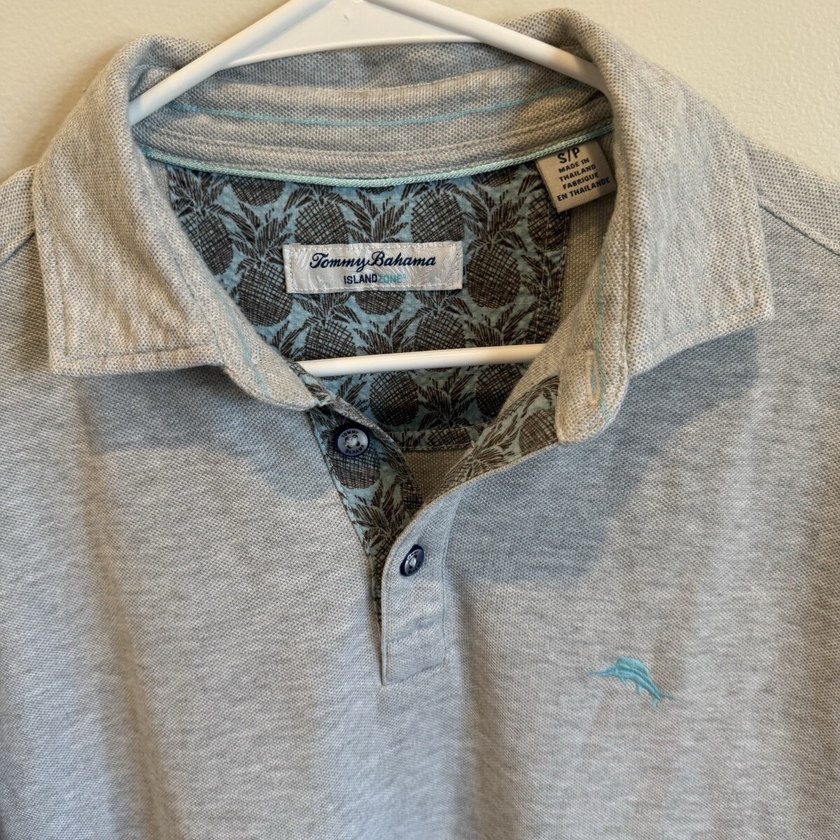 - Tommy Bahama Gray Flip Cuff Polo Shirt Men's S Island Zone Short Sleeve EUC Read
