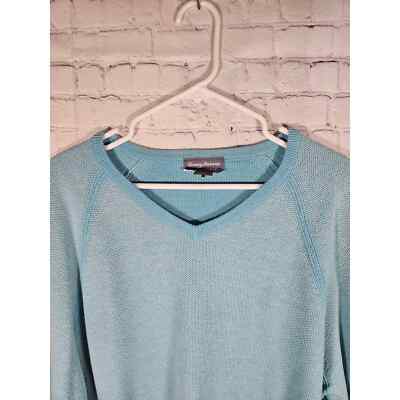 - Tommy Bahama Men's 100% Pima Cotton Sweater Light Blue Reversible Large