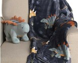 Features a super soft, plush minky fleece blanket in navy blue with a fun and colorful Dinosaur print throughout.