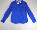 Tommy Hilfiger Blue Button Up Shirt Women's M Fitted Long Sleeve Pockets Preppy