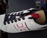 The product is a pair of Tommy Hilfiger Lewly sneakers in size 11.5M. These casual shoes are designed for men and feature the iconic Tommy Hilfiger brand logo. The sneakers come in a stylish white color with a synthetic upper material, making them both comfortable and durable for everyday wear. Ideal for those who appreciate quality and classic style in their footwear.