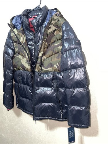 - Tommy Hilfiger Men's Midweight Chevron Quilted Hooded Puffer Jacket SZ S NEW