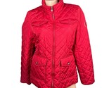 - Tommy Hilfiger Scarlet Red Quilted Jacket Womens Size M Logo Large Pockets Zip