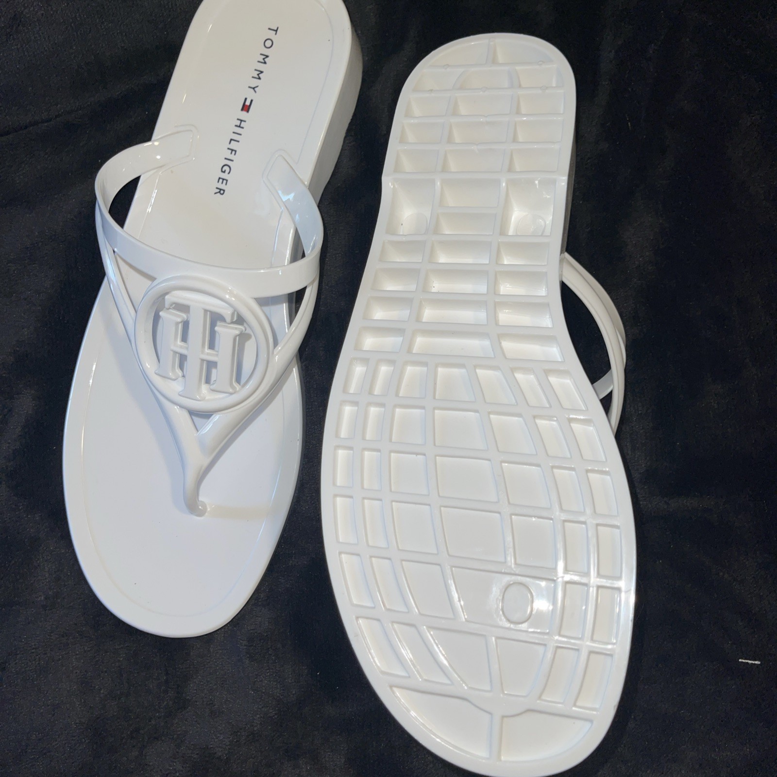- Tommy Hilfiger Vedna Sandals White Jelly Thong Cutout Logo Flip Flops sz 10 new