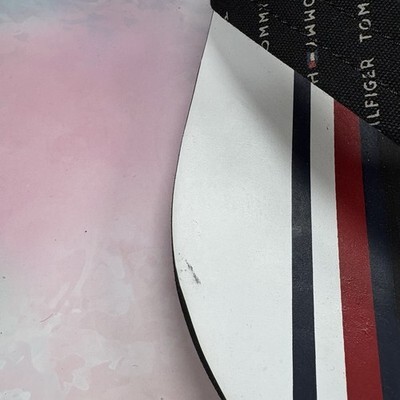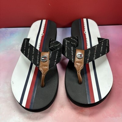 - TOMMY HILFIGER Women's Size 5.5 Red White Stripe Fabric Strap Flip Flop New