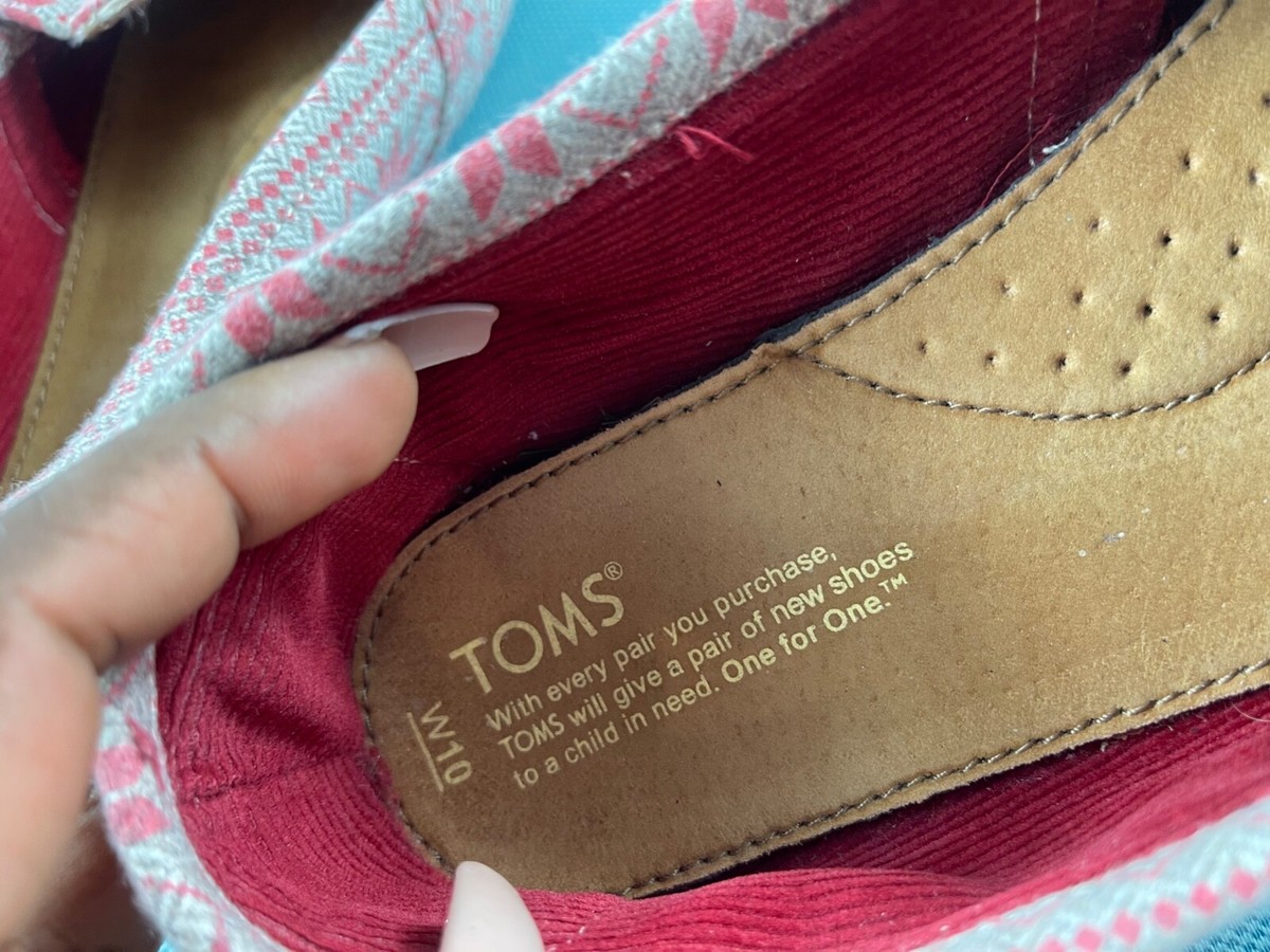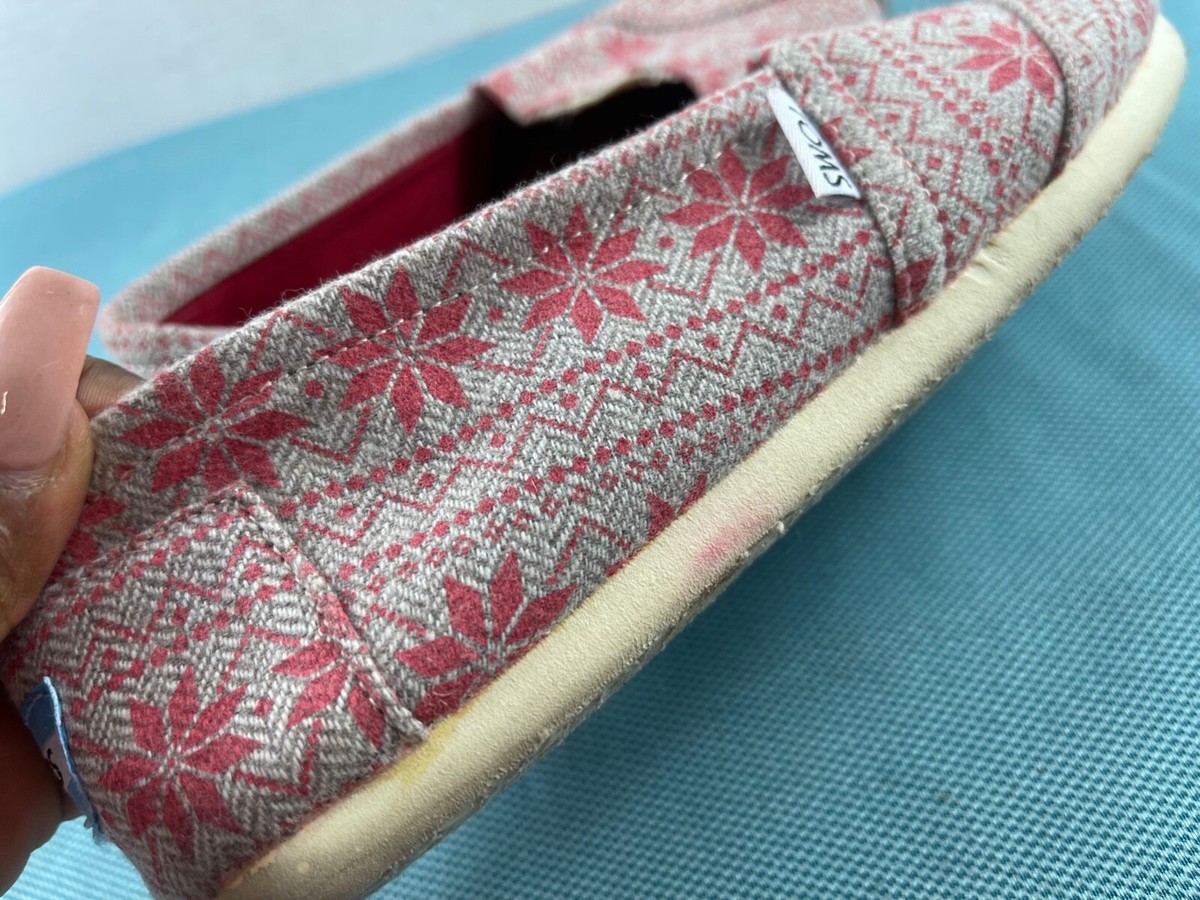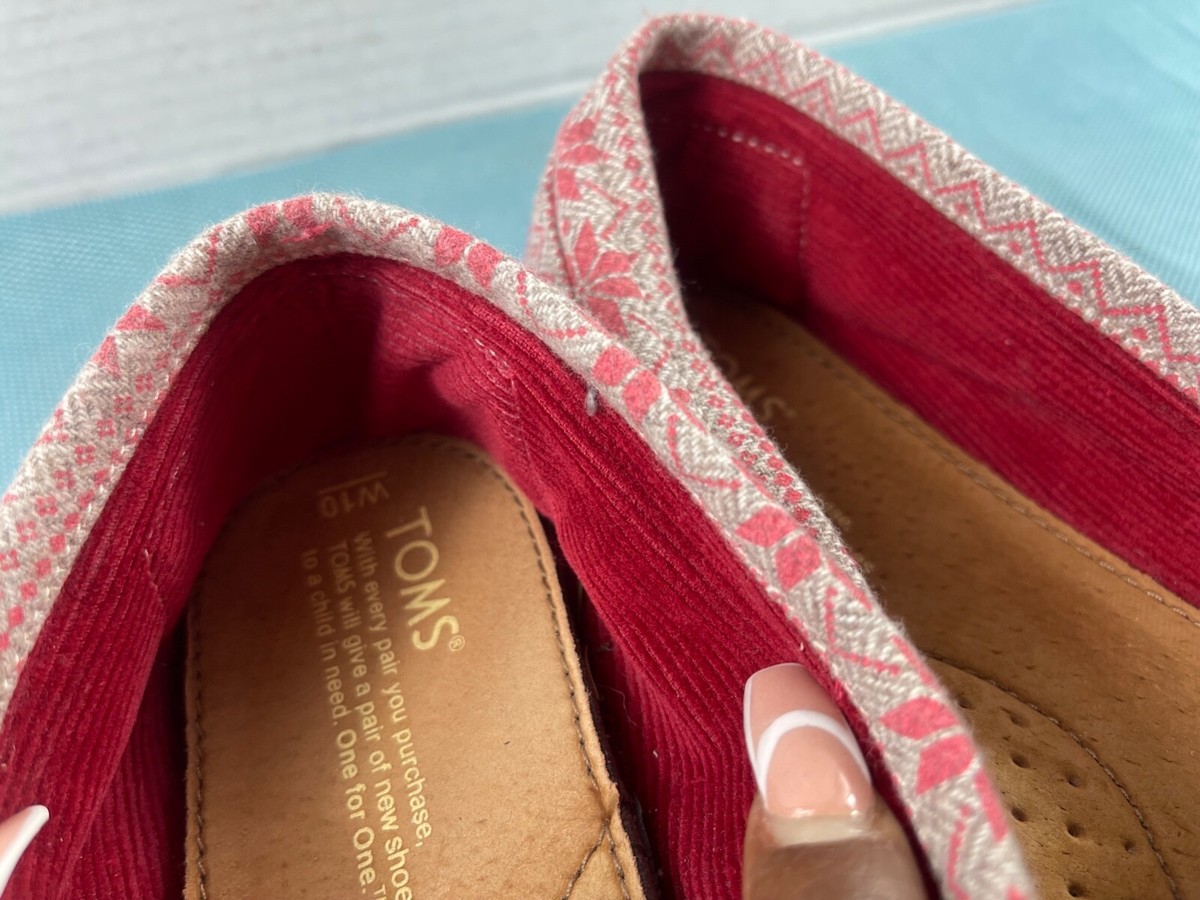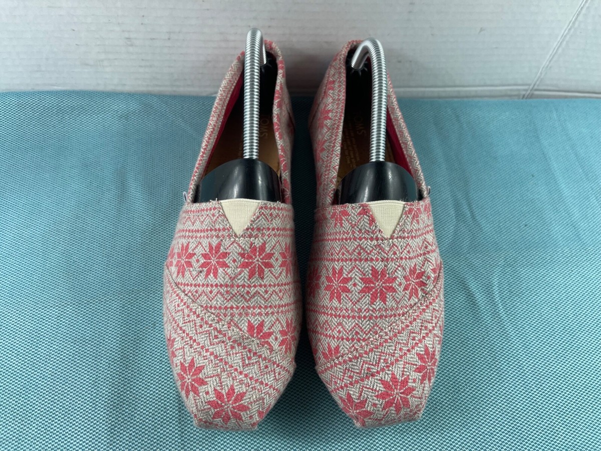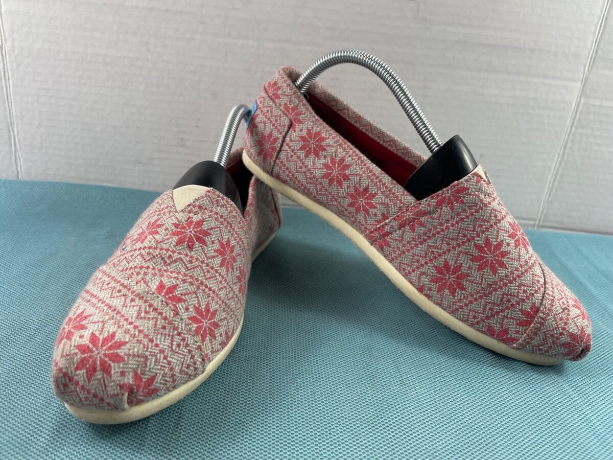 - Toms Alpargata Loafers Women 10 M Shoes Red Canvas Snowflake Canvas SlipOn Flats