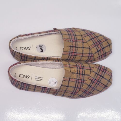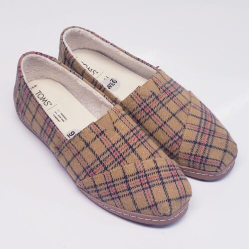 - Toms Flats Womens Size9.5W Shoes Alpargata Tan Plaid Leather Wrapped FleeceLined