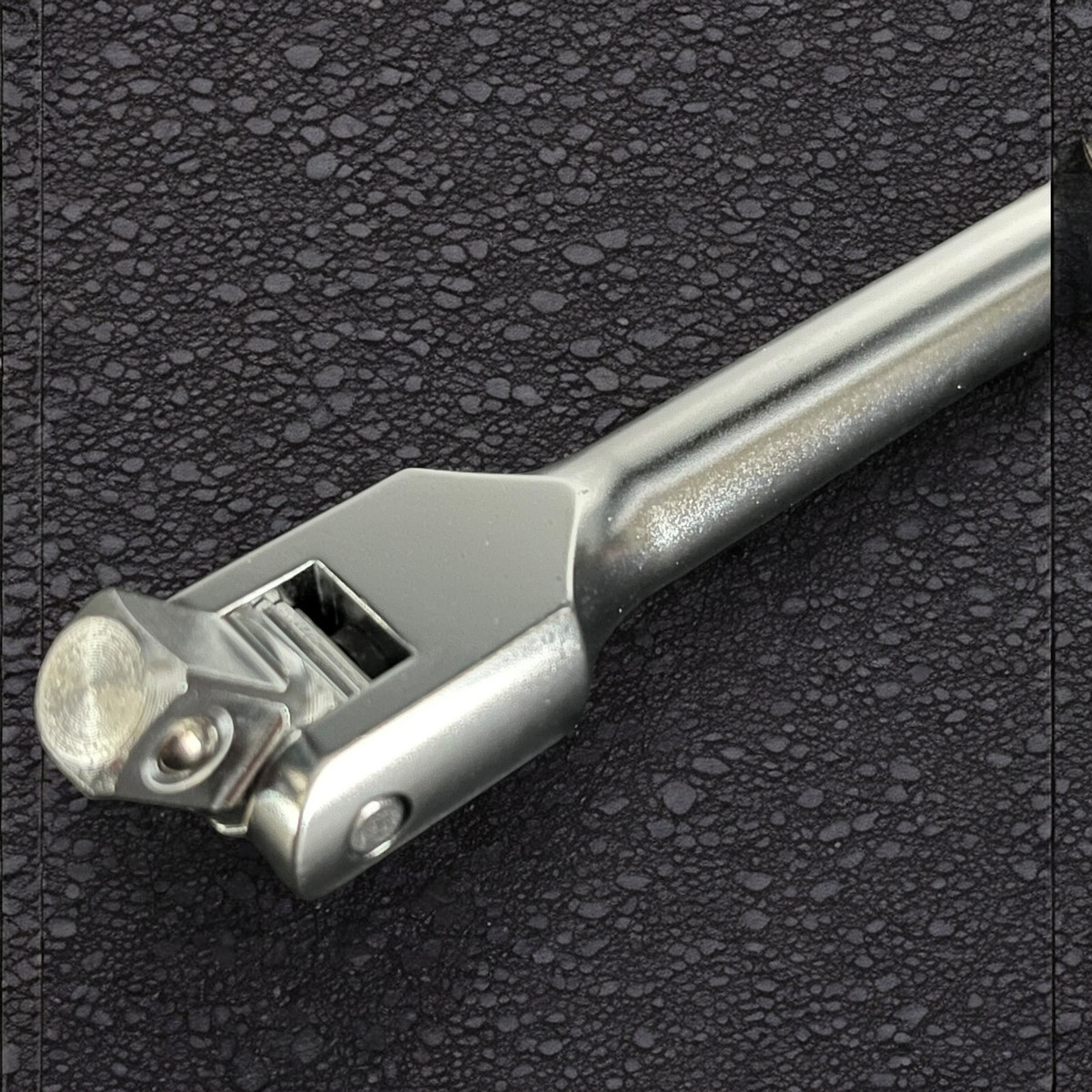 The square drive can be bent 90 degrees to both sides around the pin on the head of the handle, and the angle can be adjusted by 15 degrees.