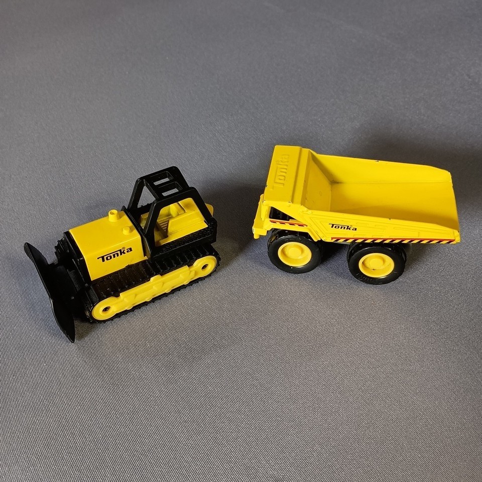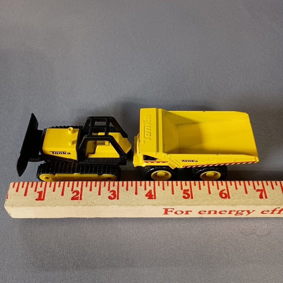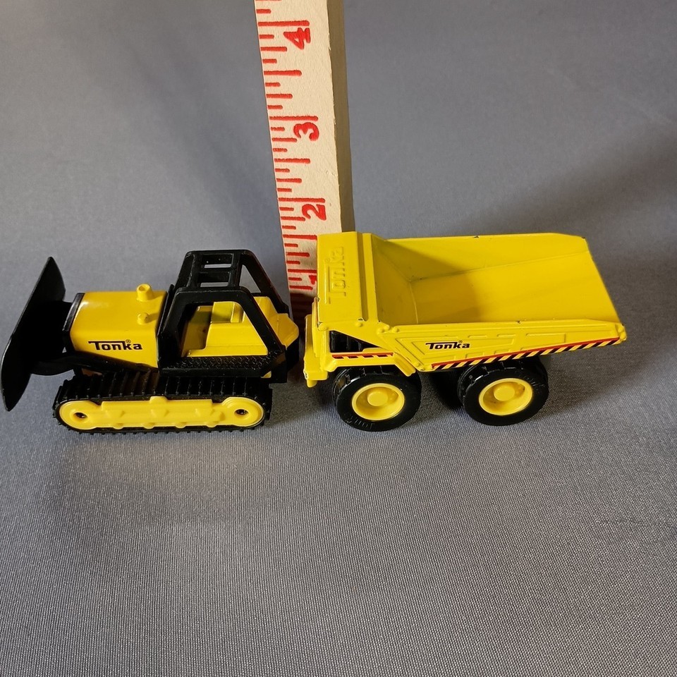 - Tonka Dump Truck and Bulldozer Diecast Mini Black and Yellow 3.5"