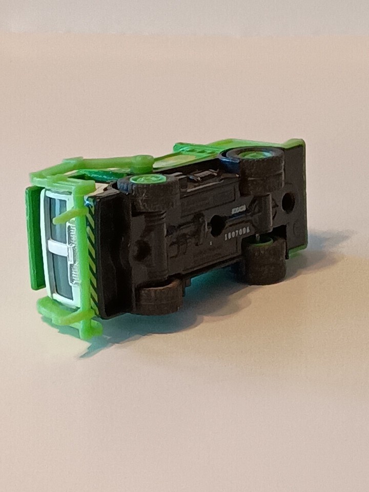 The toy product is a non working 2012 Hasbro Tonka Truck in green and white colors, made of pressed metal and plastic. It features advertising and is designed for trash recycling purposes. The scale is approximately inches in length. It was manufactured in Vietnam. It is a non-customized model in the diecast and toy vehicles category. Normal wear. See Pictures. All sizes are approximate.