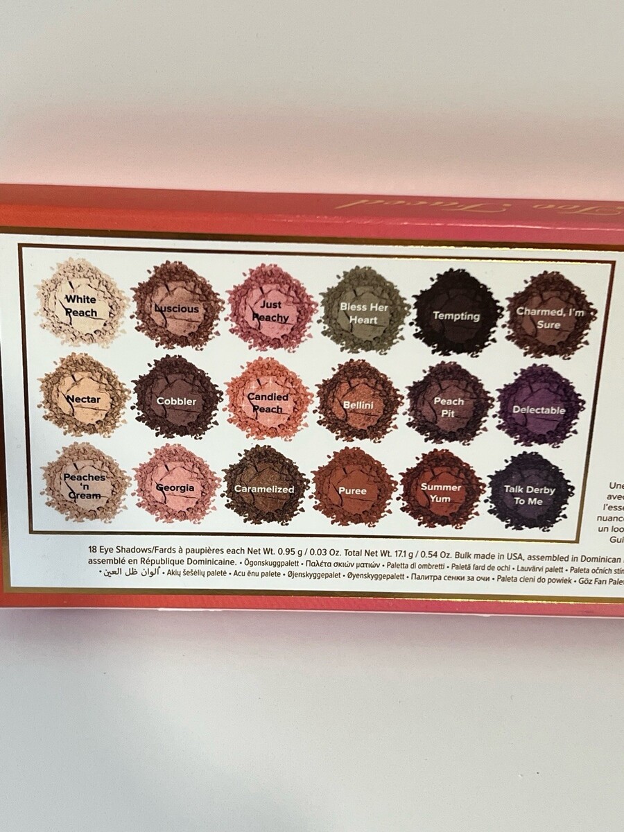 - Too Faced Sweet Peach Eye Shadow Palette Collection 18 peach-scented eye shadows