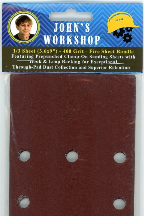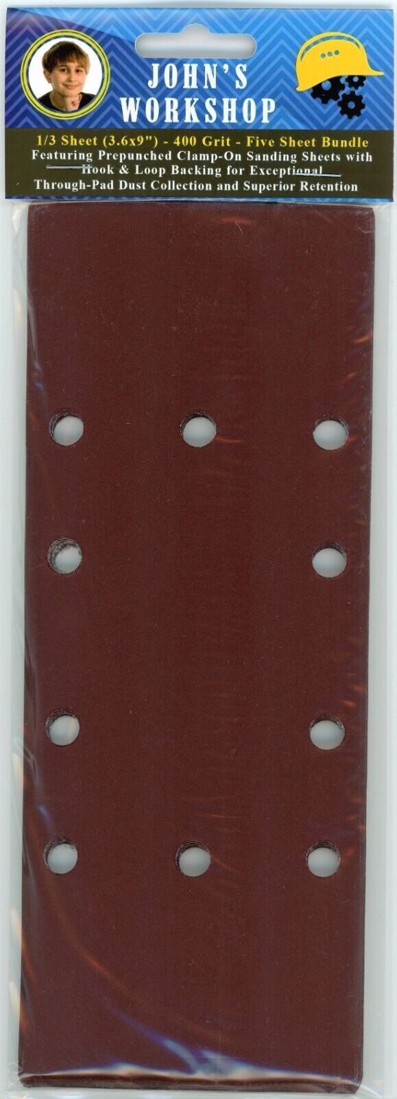 Toolman DB3218 - 1/3 Sheet (3.6x9") - 400 Grit - PrePunched - 5 Sheet Sandpaper Bundle