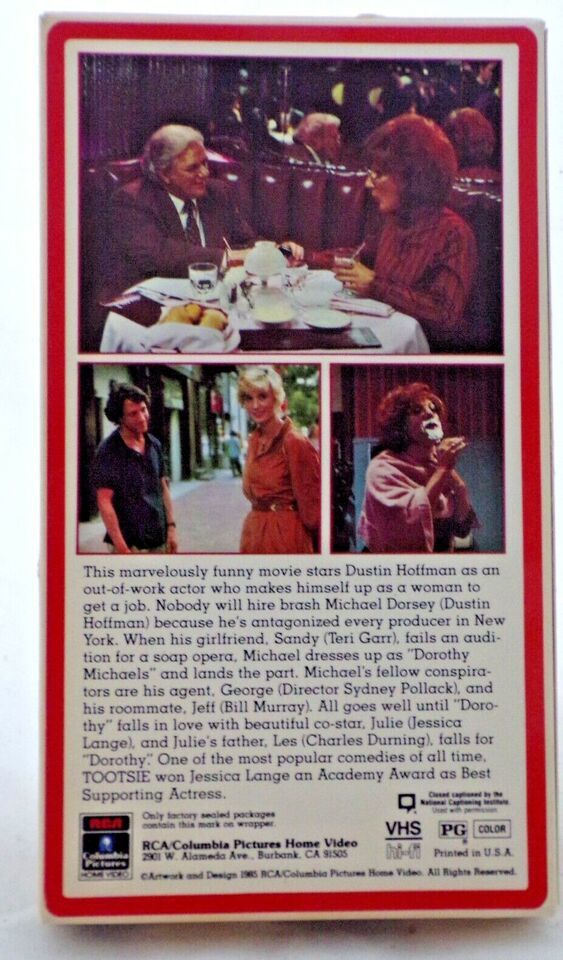 - Tootsie Dustin Hoffman, Jessica Lange, Teri Garr, Dabney Coleman,1985 VHS