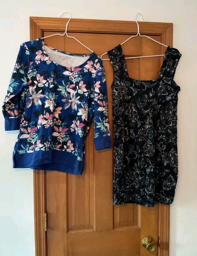 These are both in great condition. One top has 3/4th sleeves by Hilliard and Hanson. The tank top could be a long shirt or short dress and is by Ann Taylor loft.